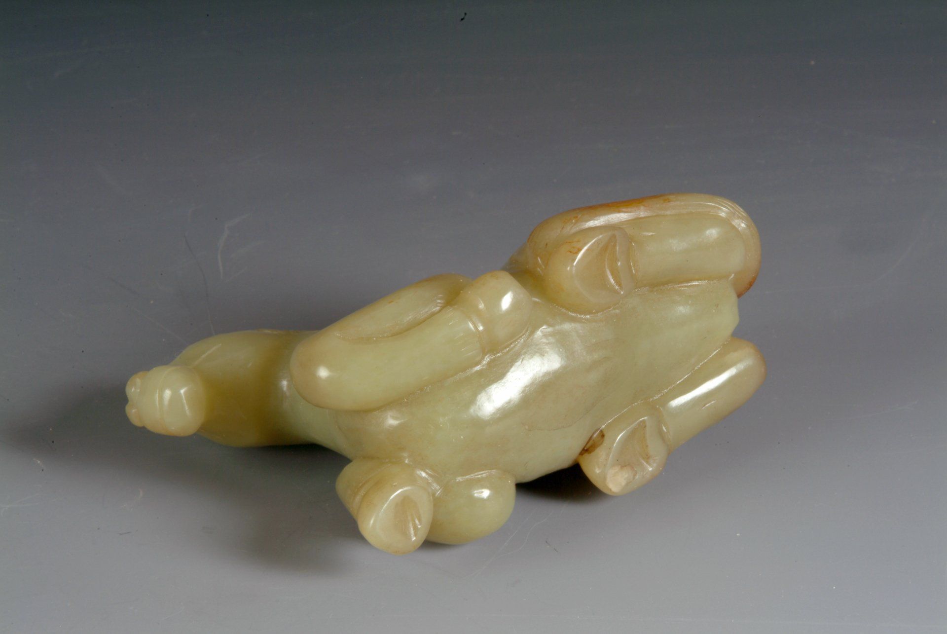 Yuan Dynasty Yellow / Celadon Jade Statue of a Resting Horse with Raised Leg