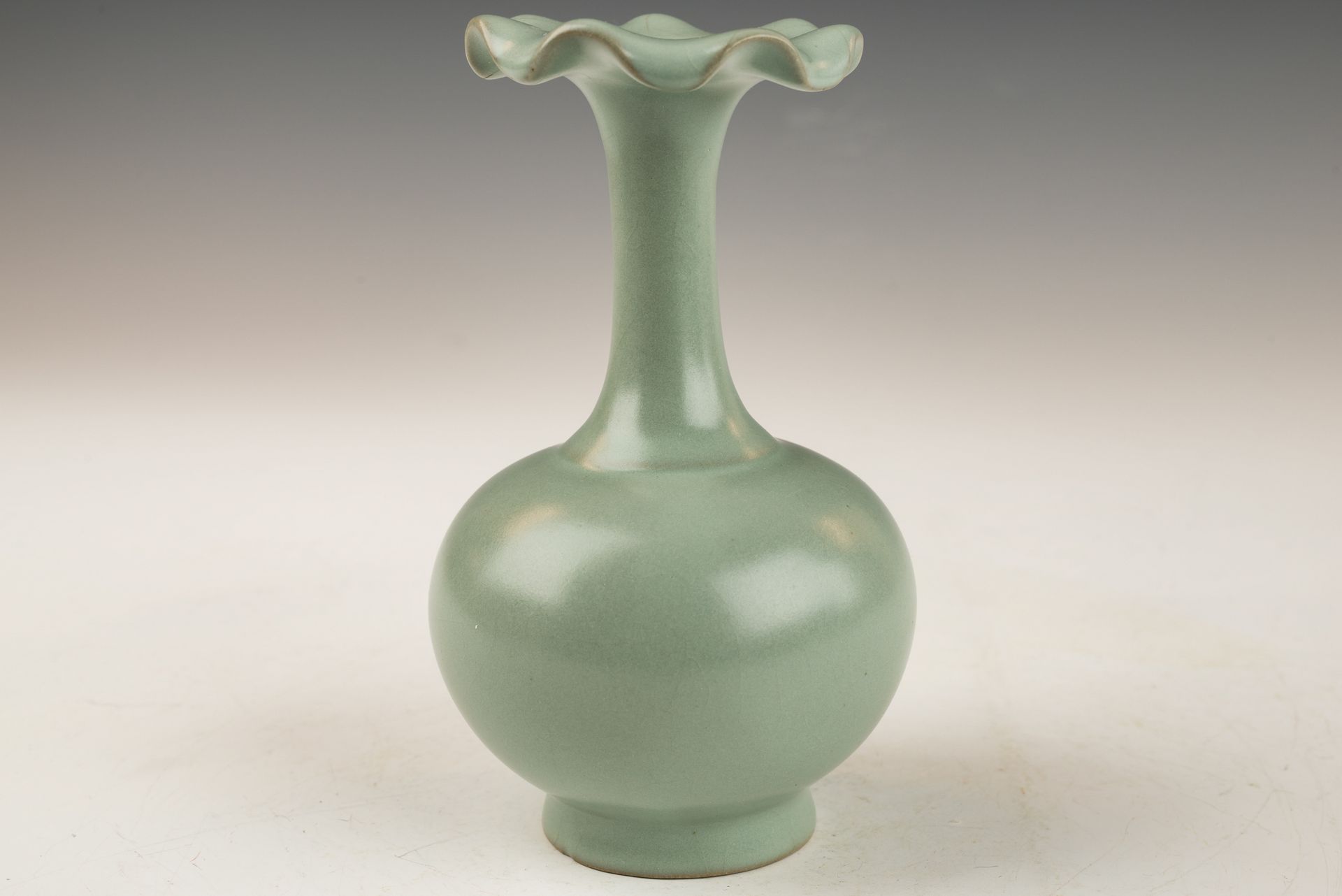 Sotheby's sold this flawed Guan vase for approx. $14,000,000.usd in Hong Kong in April 7, 2015. This vase has holes in the glaze in several areas. The form is not well balanced it looks like a beginner potter formed this piece. It is not an official court piece and is not marked as such and it came from the same collection they sold a Ru Ware flawed merchant pieces for $27,000,000 usd in Hong Kong They cheated and swindled the Collectors that purchased them. These corrupt Auction Houses cheat all collectors because they don't have the opportunity to purchase the rarest and finest pieces in the world also by keeping the finest pieces out of their auctions the average collector has no idea where their pieces fit the marketplace or what the value should be.