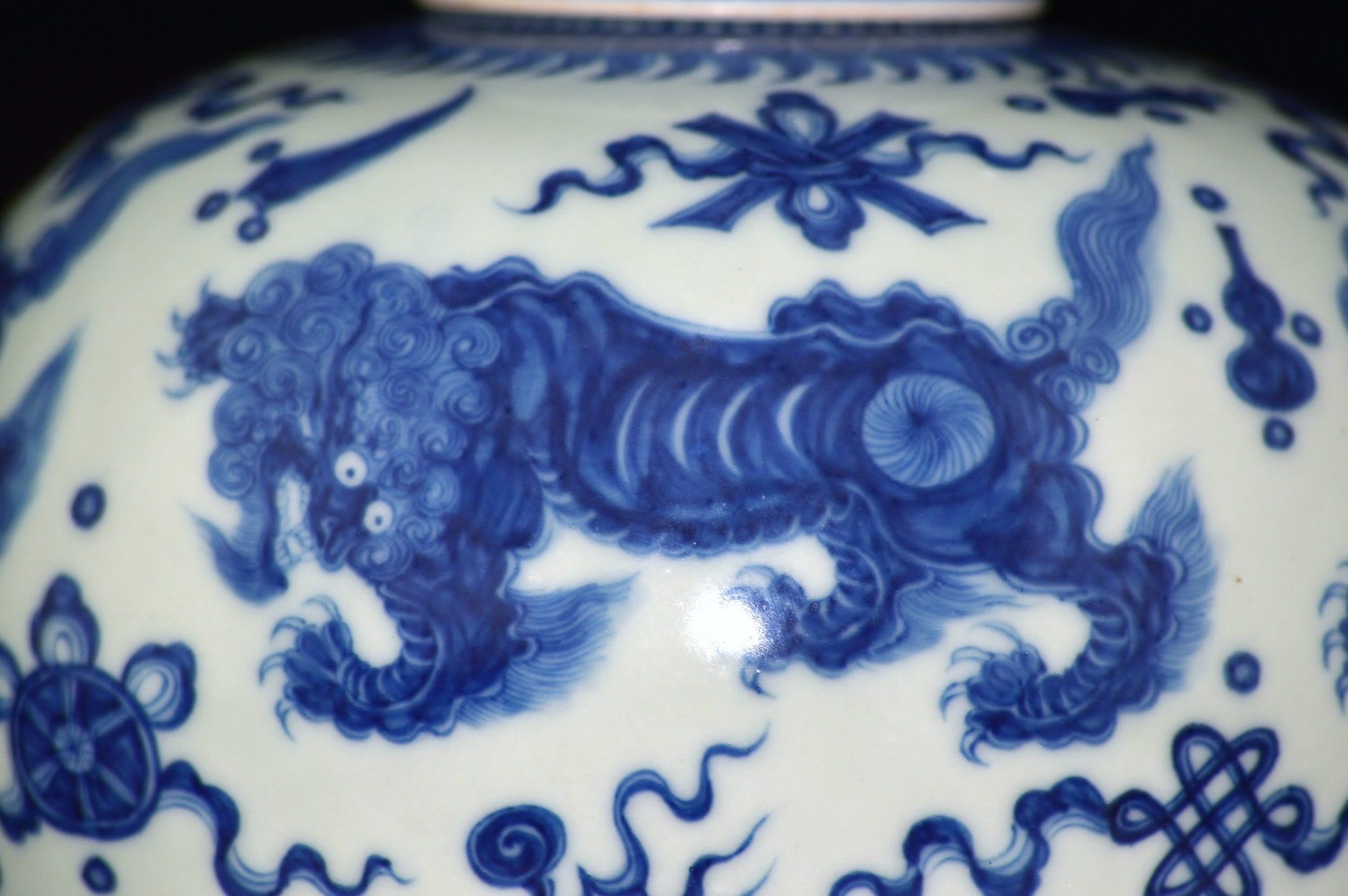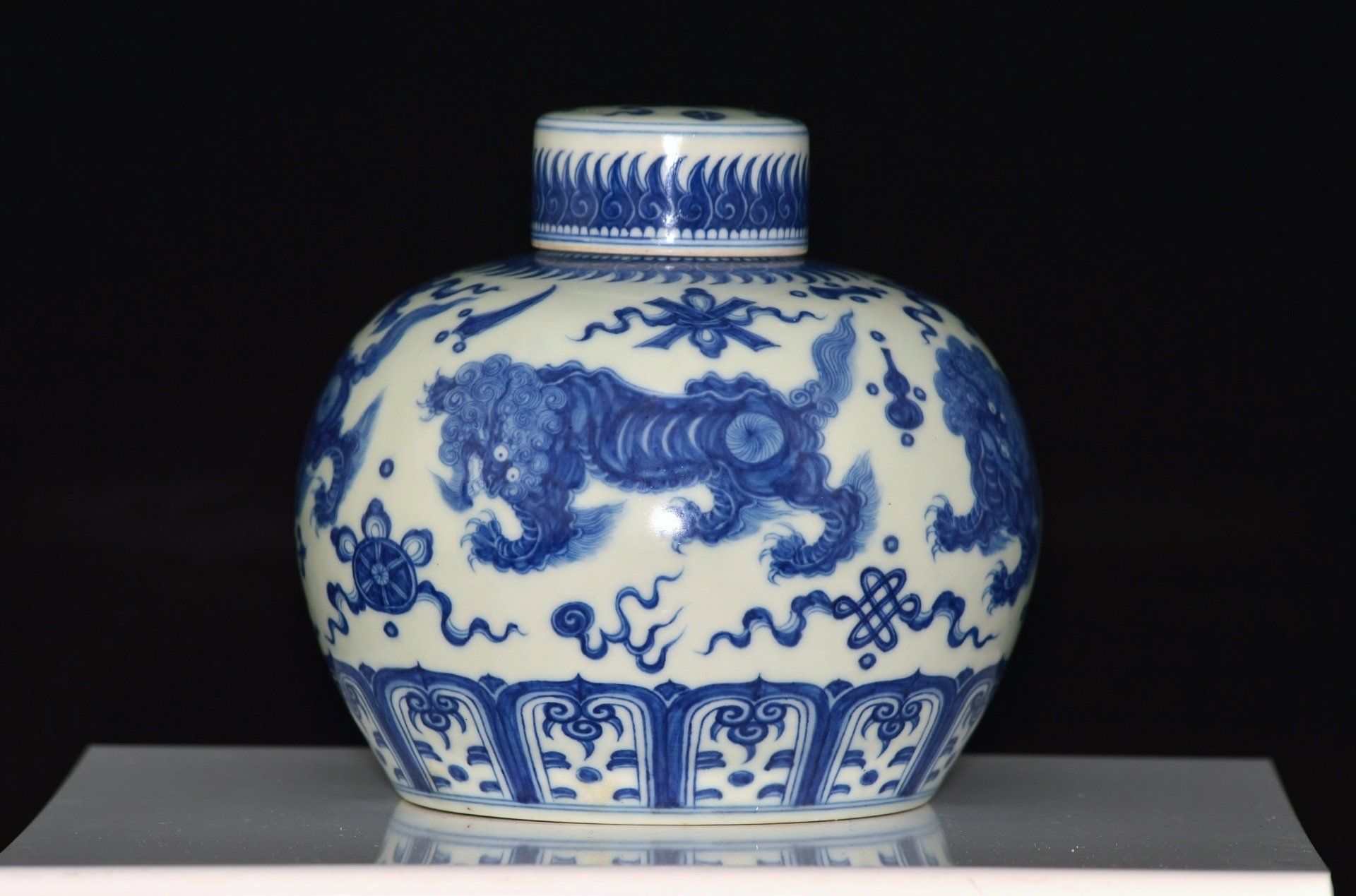 This exquisite artifact, known as the Blue and White Ming Dynasty Chenghua Mark and Period Imperial Buddhist Lion Jar, exemplifies the artistry of the Chenghua period, which spanned from 1465 to 1487. Measuring approximately 5 1/8 inches in height, this jar is a quintessential representation of the highly coveted Chenghua wares. Its delicate craftsmanship showcases an extraordinary level of skill and precision that truly merits in-person observation to fully appreciate the artistic mastery involved in its creation during the Ming Dynasty. Upon consulting auction catalogs, scholarly texts, and museum collections, one will find it difficult to locate a comparable example of a Chenghua Jar available in the marketplace. The jar features a sophisticated form and vibrant coloration, adorned with remarkably controlled freestyle brushwork, executed with what appears to be minimalistic hairbrush strokes. This attention to detail is emblematic of the finest Chenghua wares. The decorative motifs include four Buddhist Lions and various Buddhist symbols. An examination through a jeweler’s loupe reveals noticeable flaking in the biscuit, an indicator of the jar's significant age. Among Chinese ceramics, blue and white wares from this period are among the most sought after, distinguished by the stunning cobalt blue hues that are characteristic of Chenghua production. The cobalt utilized during this dynasty has a distinct blackish tone, derived from imported Samali blue cobalt believed to have originated in Persia, though the specific source remains uncertain and has not been imported for over five centuries. In addition, local cobalt known as Pitang was employed. The mixing of these two cobalt types resulted in a refined palette of colors that defined the aesthetic quality of Chenghua wares. Artisans of this period skillfully painted fine outlines filled in with broad brushstrokes, demonstrating a unique approach to composition. The refinement of clay and the use of high-firing kilns often resulted in aesthetic peculiarities, such as a mottled appearance on the undersides of larger vessels or wavy glaze textures discernible under reflective light. This particular glaze is easily identifiable due to its fine quality and the presence of minute, even bubbles observable with a magnifying lens. In summary, the true Imperial blue and white Chenghua wares represent the pinnacle of ceramic artistry within the Ming Dynasty, and this jar stands as a testament to that legacy.