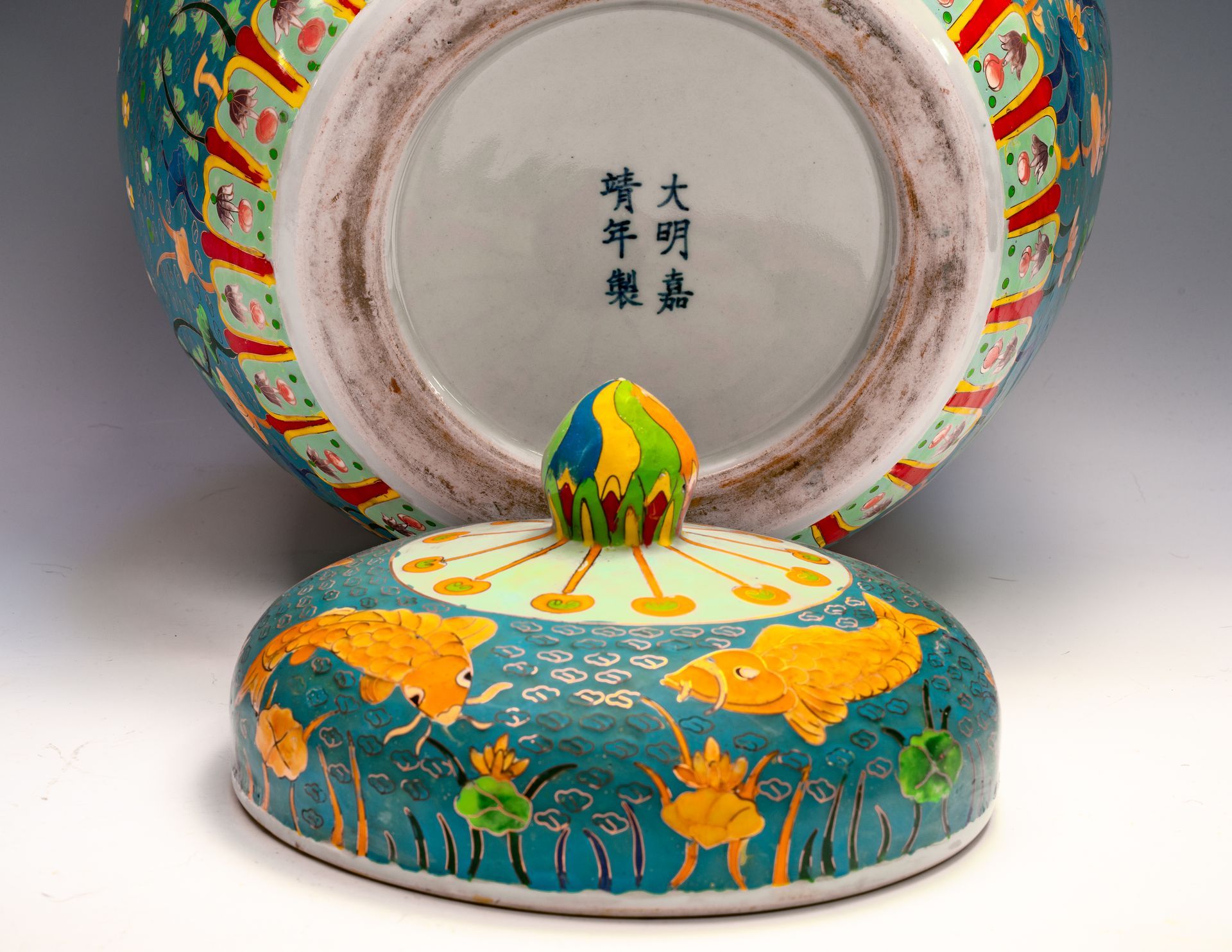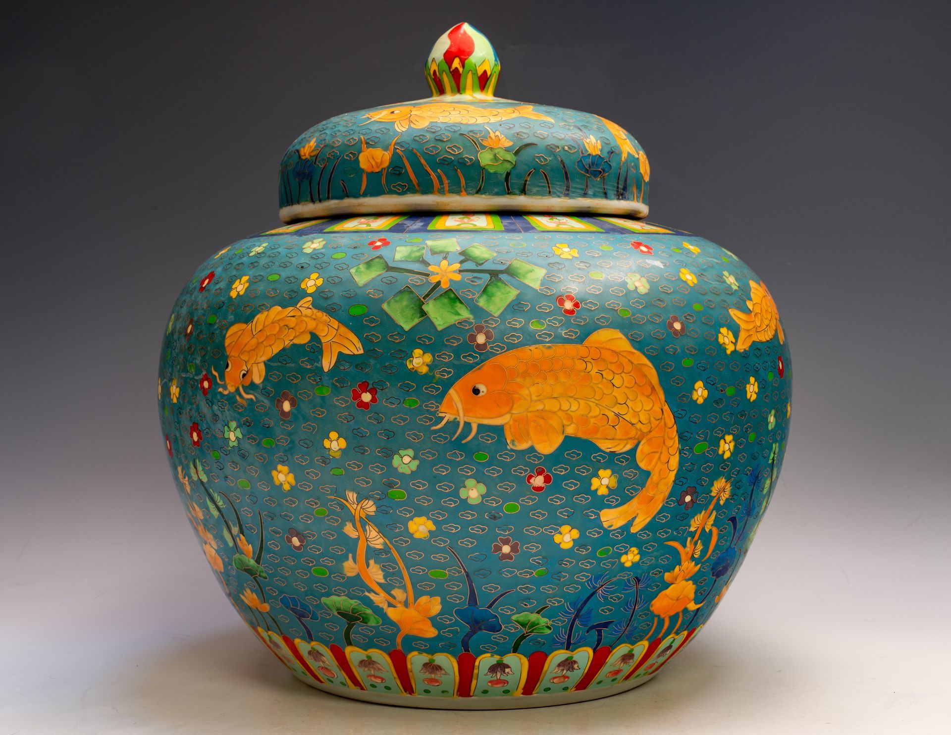 Exceptional Cloisonné Jar and Lid with Fish Motif from the Ming Dynasty, Mark and Period of Jiajing