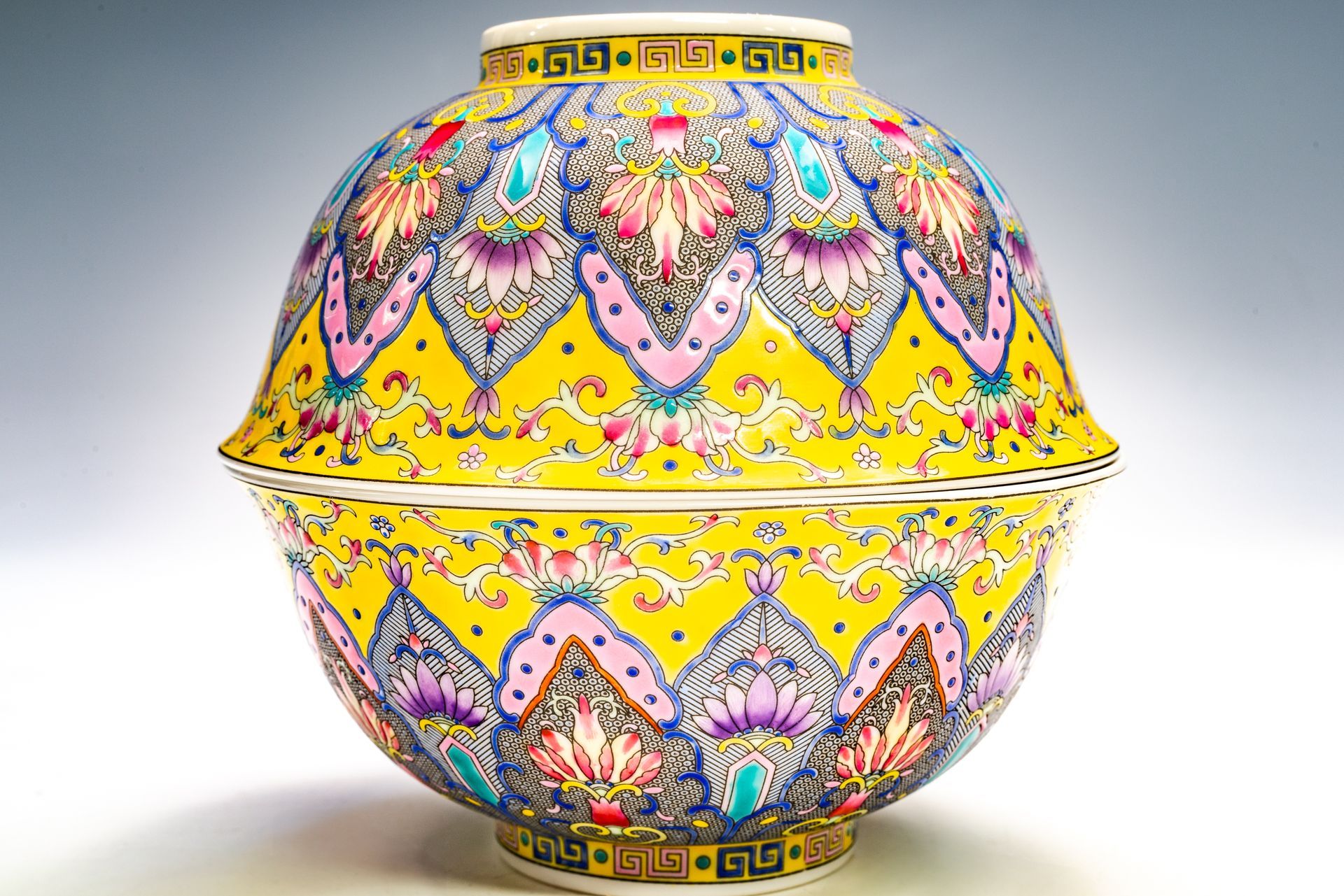 This exceptional Jiajing Cloisonné Fish Jar with Lid, distinguished by its remarkable rarity and importance, originates from the Ming Dynasty. The Jiajing period, spanning from 1522 to 1566, is renowned for its exquisite Fish Jars, and this particular piece exemplifies the mastery of cloisonné craftsmanship. The jar exhibits minor flaking in the biscuit, a testament to its historical authenticity. This extraordinary work of art stands at an impressive height of 15 1/2 inches. ppjrs
