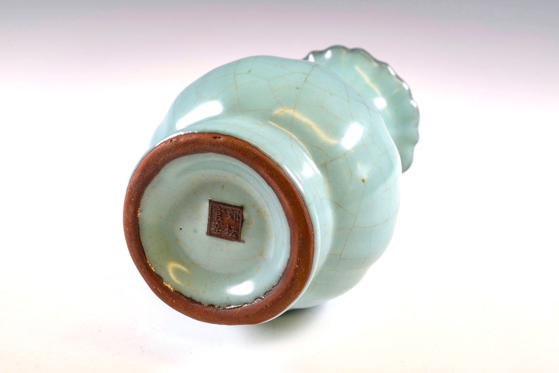 Guan Yao Ribbed Vase: An Exceptional Example, This Official Xiuneisi Inner Kiln Vase, Inscribed was Crafted for the Imperial Court of the Southern Song Dynasty (1127-1279).