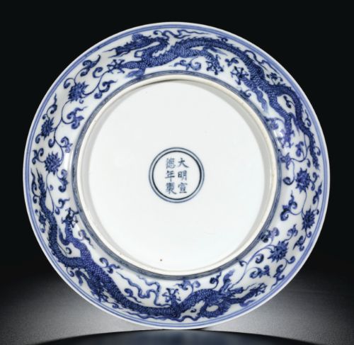 Sotheby's sold this Ming Dynasty Xuande Blue and White small Dragon Dish 9 7/8" dia. in Hong Kong on 4/4/2012 for $2,392,732 usd. The cobalt with characteristic 'heaping and piling,' the base inscribed with a six-character reign mark within double circles. These corrupt Auction Houses cheat all collectors because they don't have the opportunity to purchase the rarest and finest pieces in the world also by keeping the finest pieces out of their auctions the average collector has no idea where their pieces fit the marketplace or what the value should be.