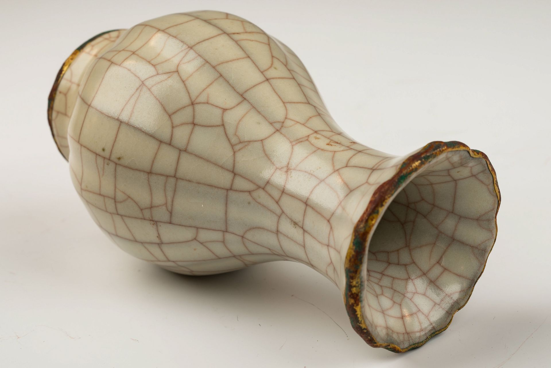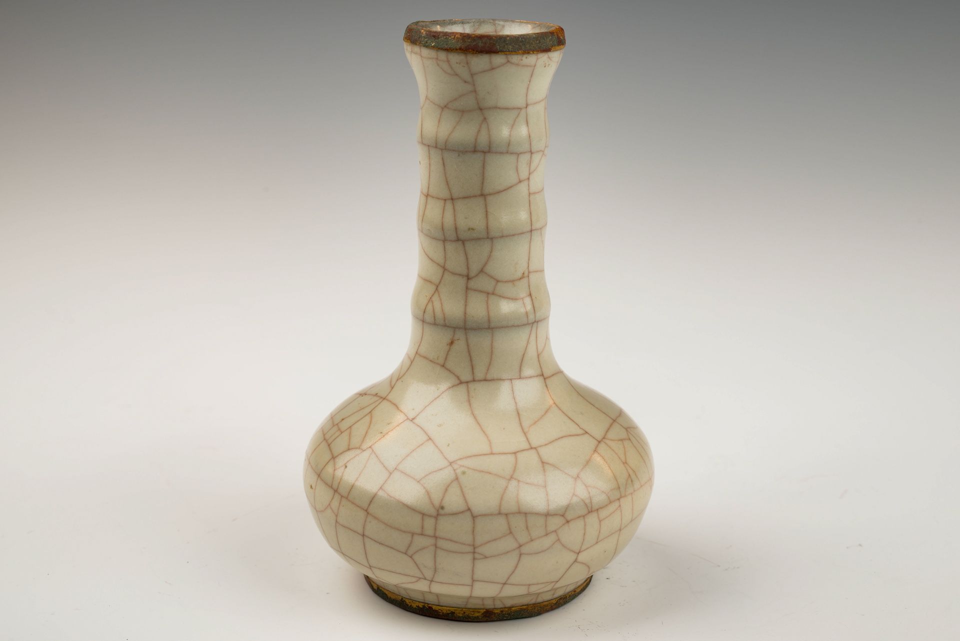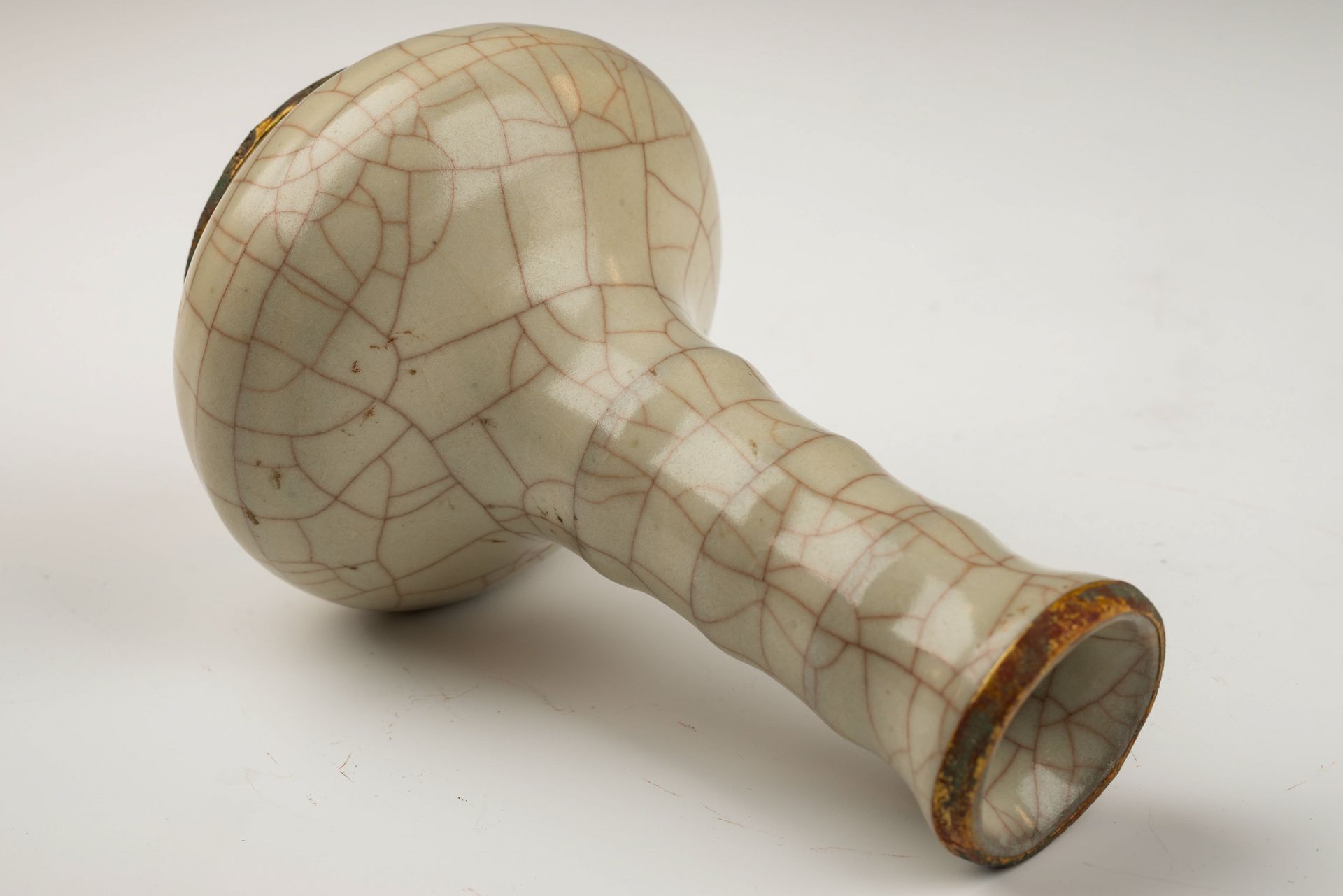 مزهرية غوان ياو، مصنوعة من فرن غوان الإمبراطوري الرسمي من عهد أسرة سونغ، برقبة من الخيزران المتشقق مع أشرطة مطلية بالذهب بالنار
