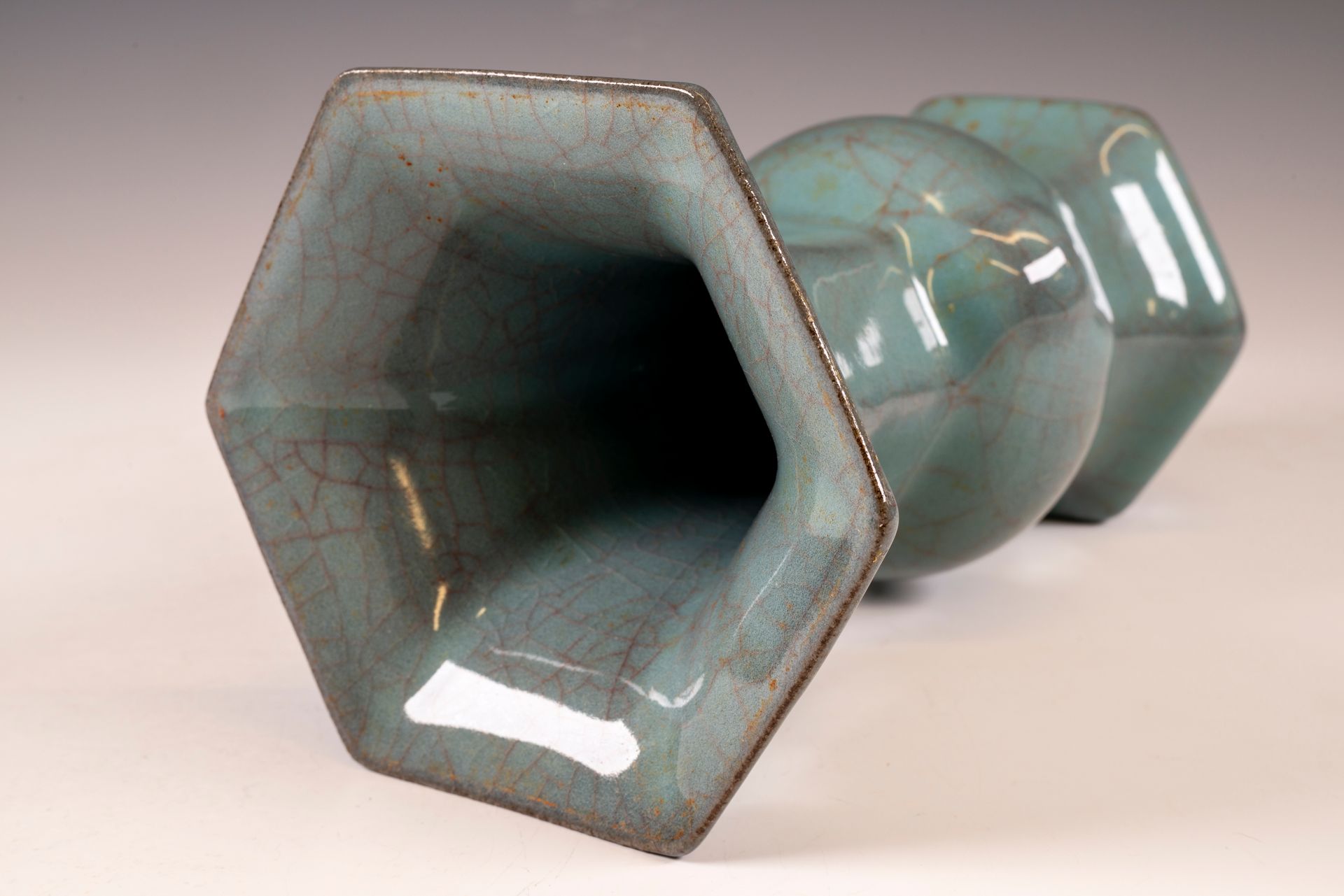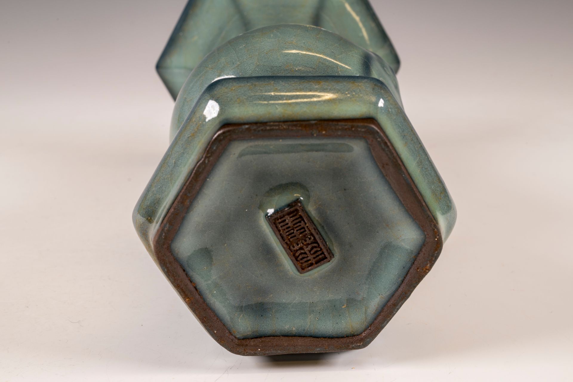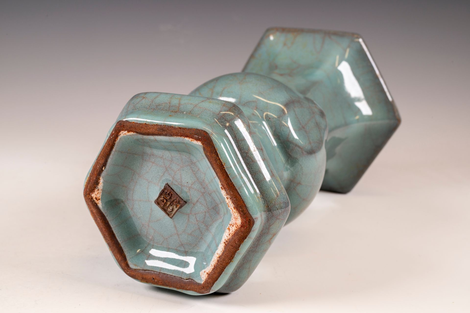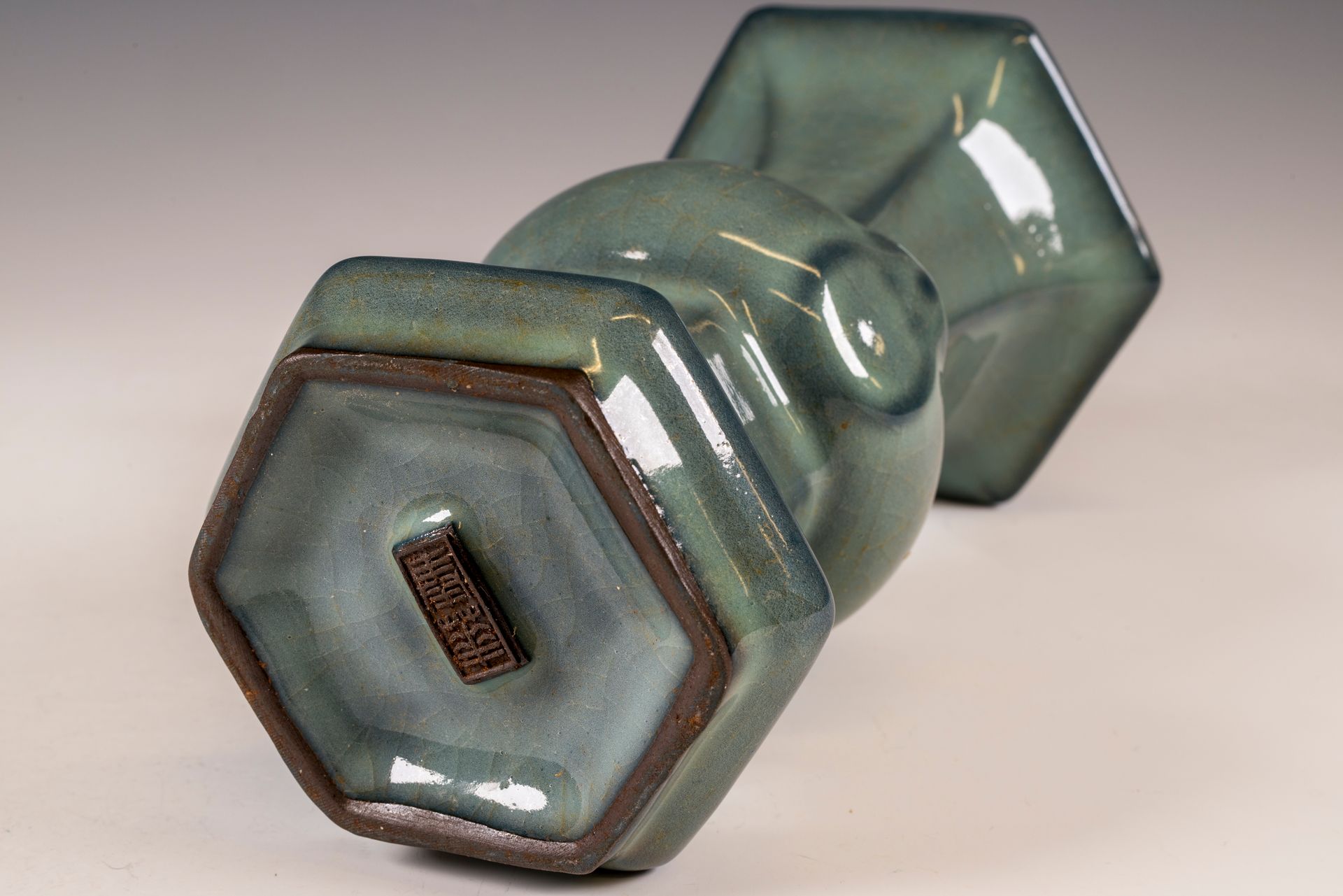 مزهرية سداسية رسمية من فرن غوان الداخلي من عهد أسرة سونغ الجنوبية تحمل علامة وتاريخًا يعود إلى فترة غوان وير الإمبراطورية
