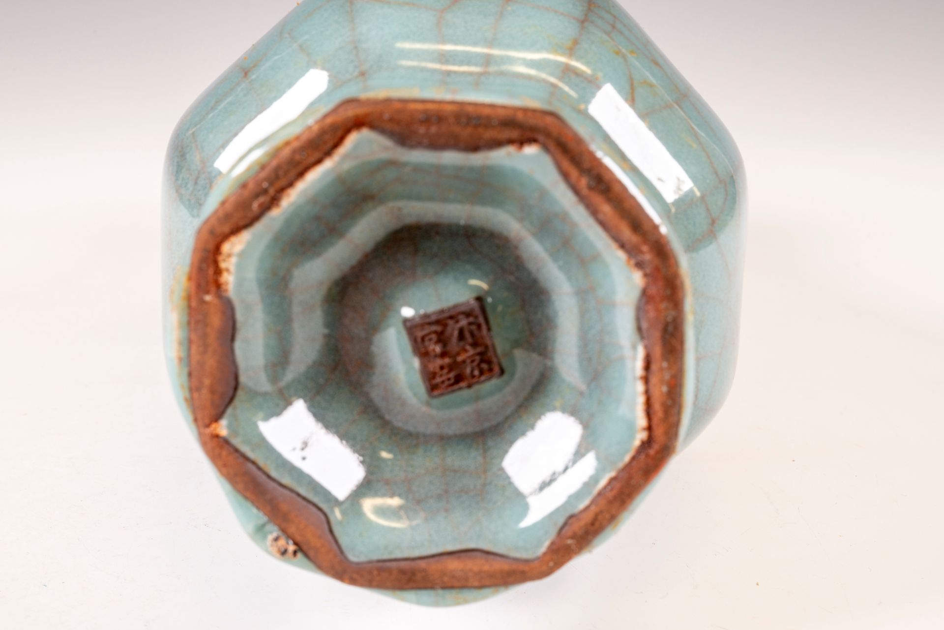 مزهرية رسمية مثمنة الشكل من الخزف الإمبراطوري غوان من عهد أسرة سونغ الجنوبية، تحمل علامة وإنتاج فرن شيونيسي الداخلي