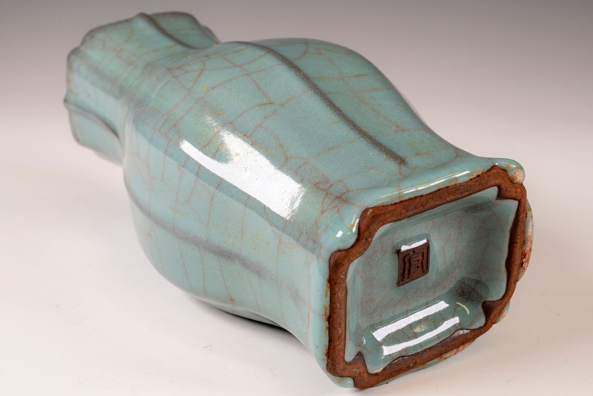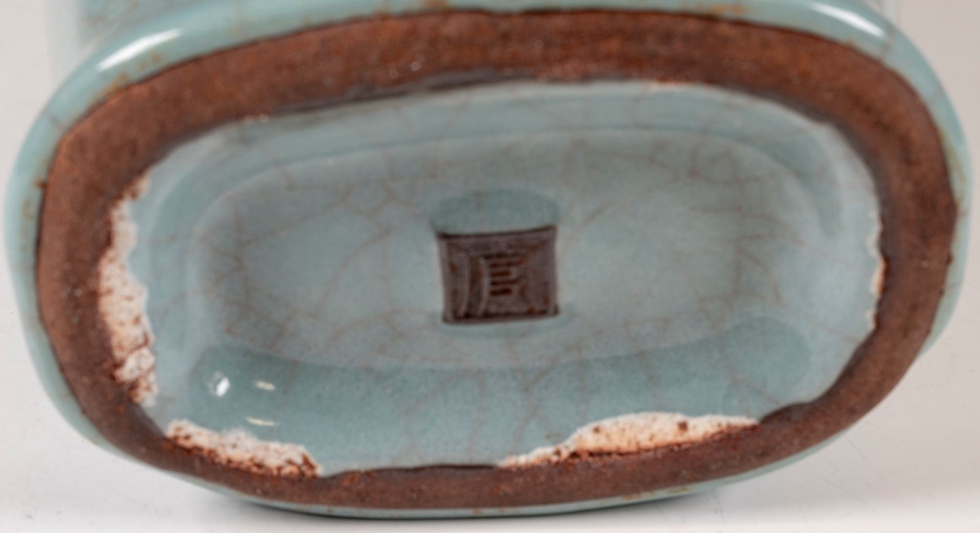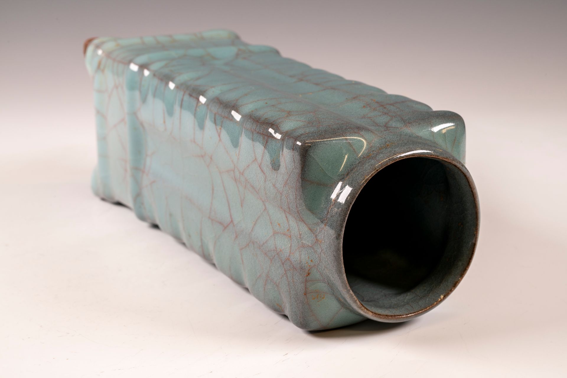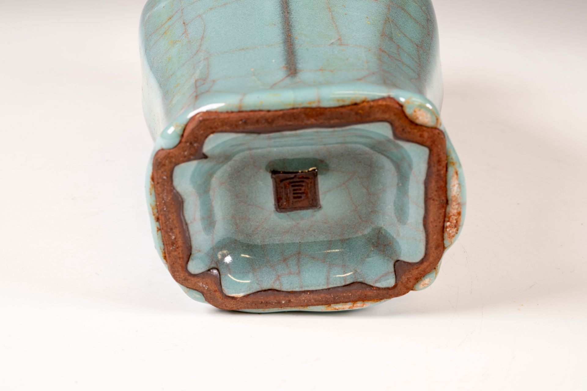 مزهرية غوان ياو الرسمية من عهد أسرة سونغ الجنوبية، مصنوعة من فرن شيونيسي الداخلي، تحمل علامة غوان الإمبراطورية، ومزينة بأضلاع مربعة من تلك الفترة