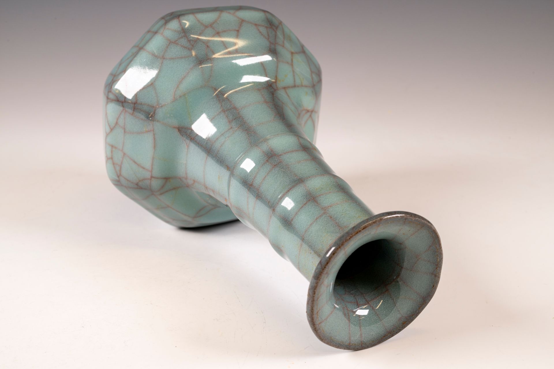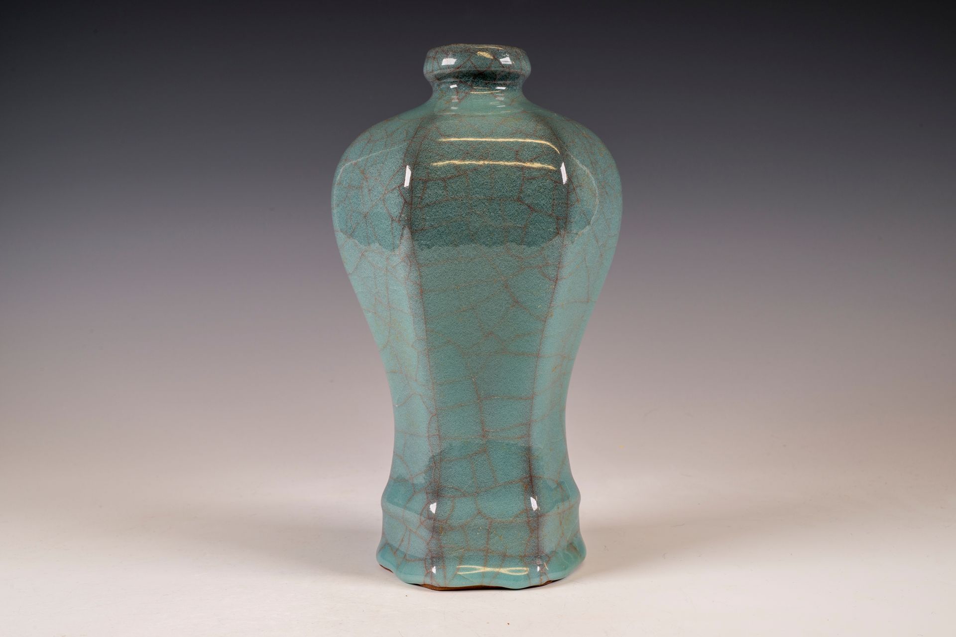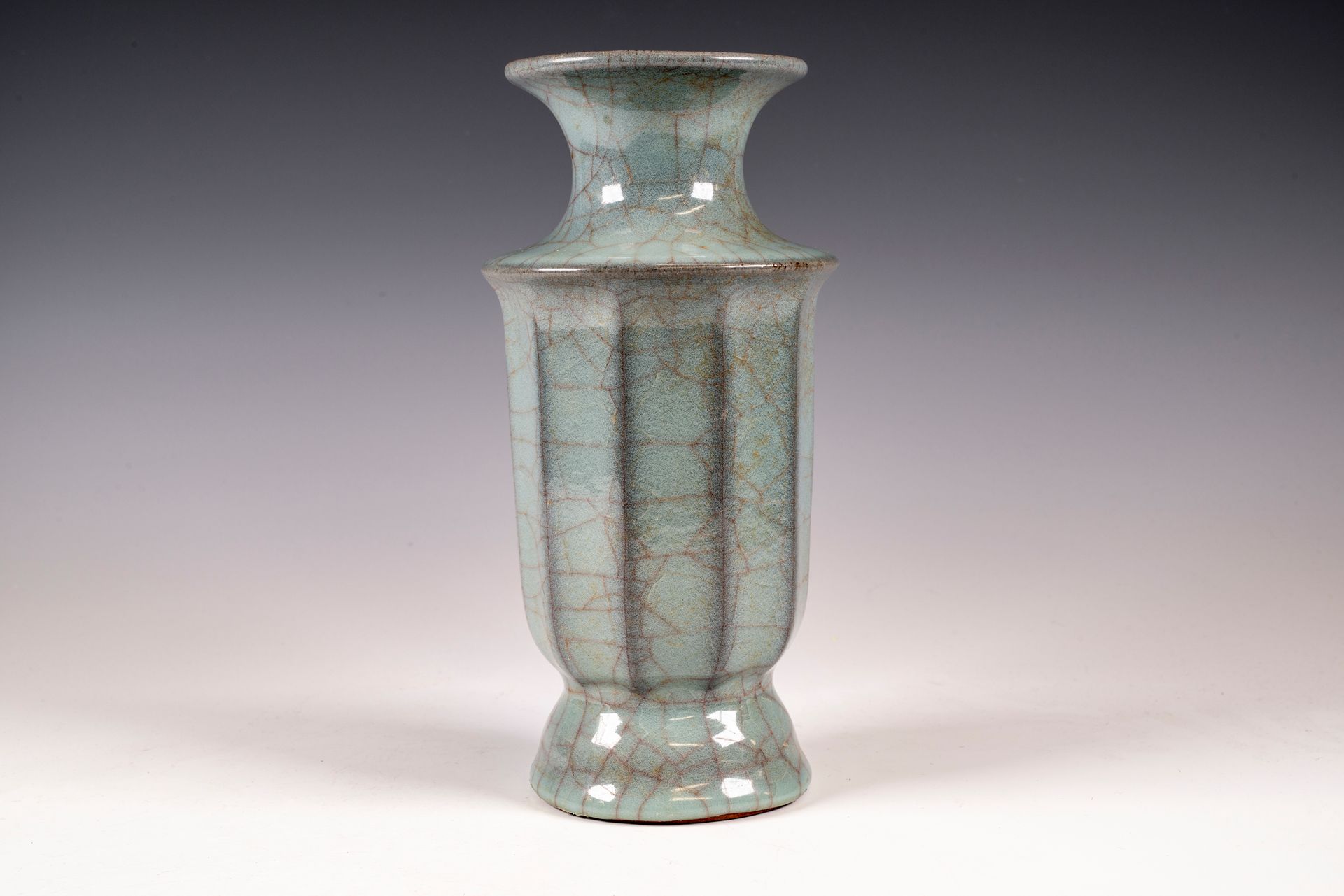 غوان ياو من عهد أسرة سونغ الجنوبية: فرن غوان الإمبراطوري الرسمي من الفرن الداخلي شيونيسي، مزهرية زجاجية مثمنة الشكل تحمل علامة الفترة