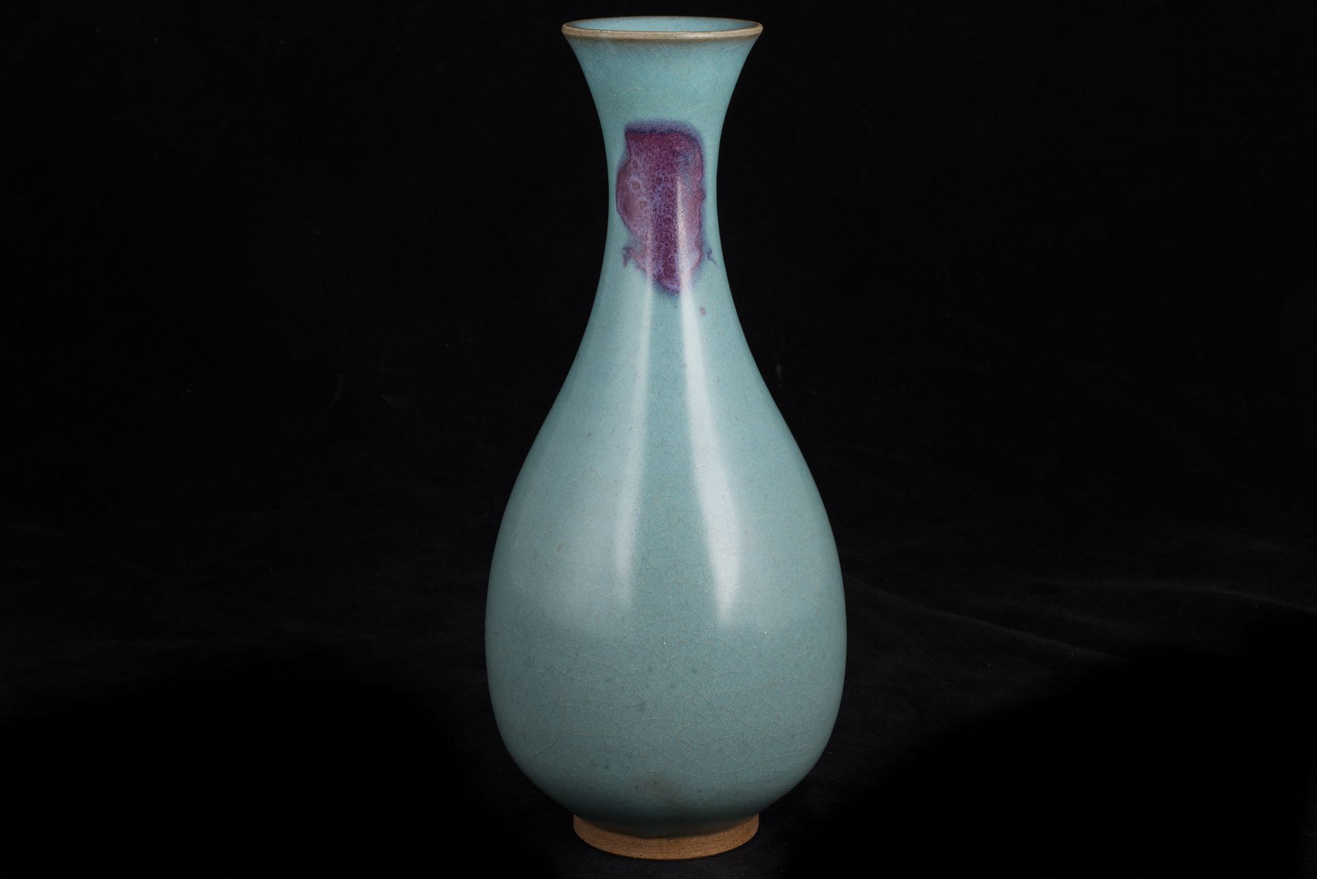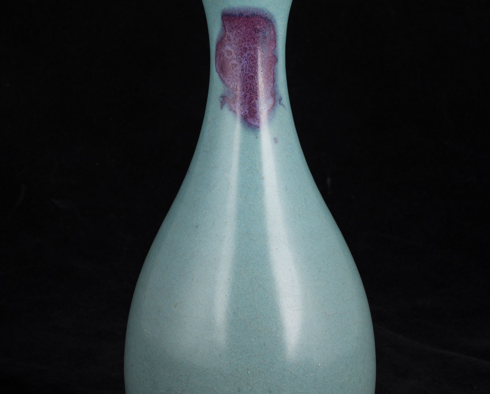 مزهرية زرقاء طويلة العنق على شكل كمثرى من مجموعة Jun Ware من الشمال