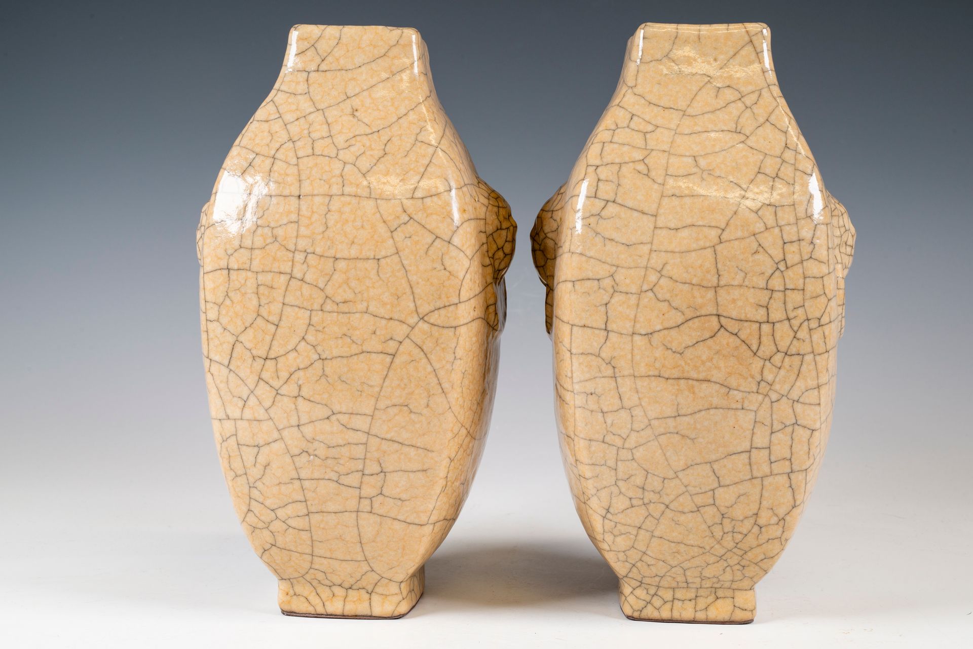 سونغ الجنوبية / أسرة يوان: زوج من المزهريات المربعة المنحنية النادرة للغاية، مزينة بقناع نمر ومقابض حلقية