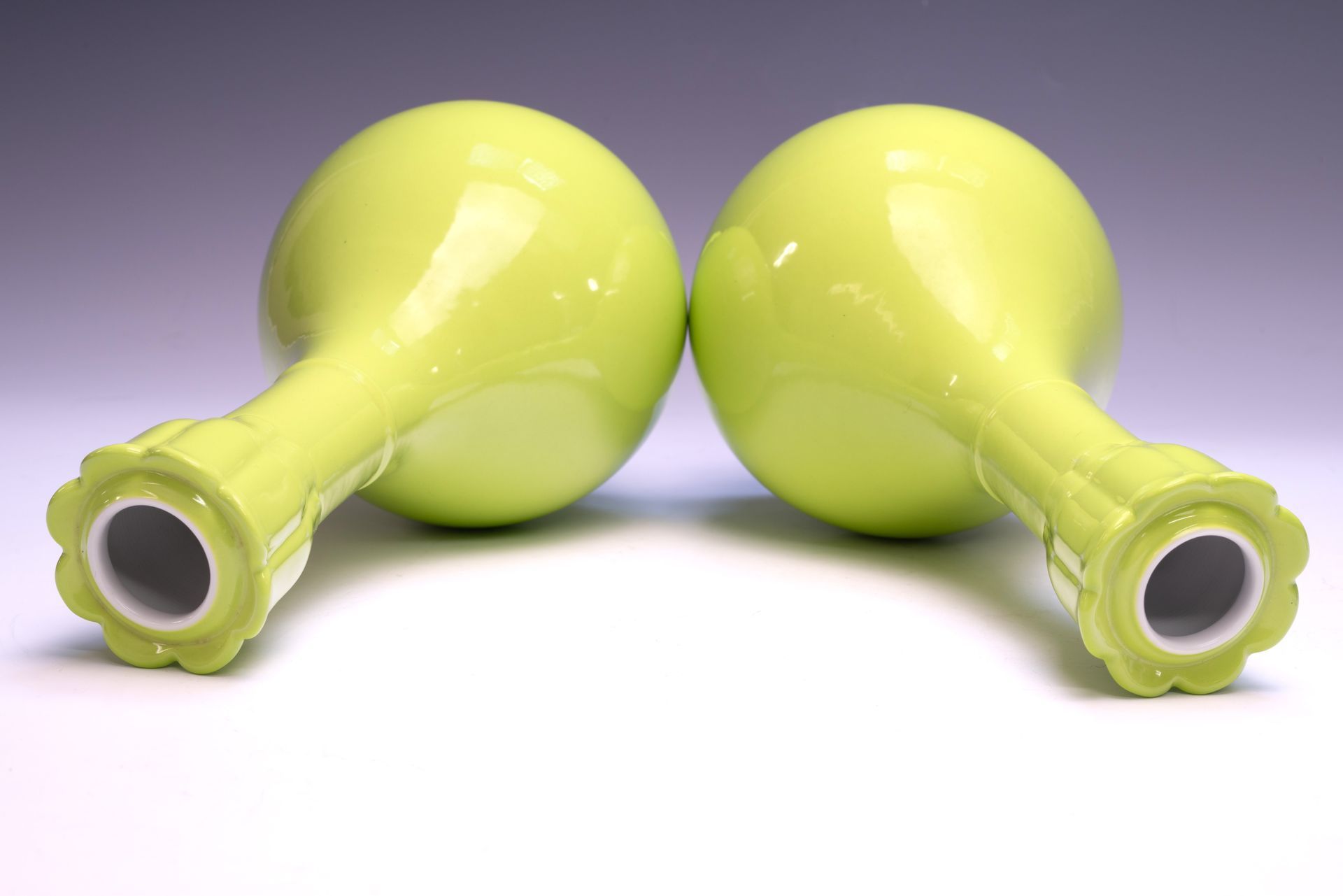 زوج مهم من ختم إمبراطورية يونغتشنغ من عهد أسرة تشينغ ومزهريات أحادية اللون من الفصوص الثومية النادرة ذات اللون الأخضر المصفر