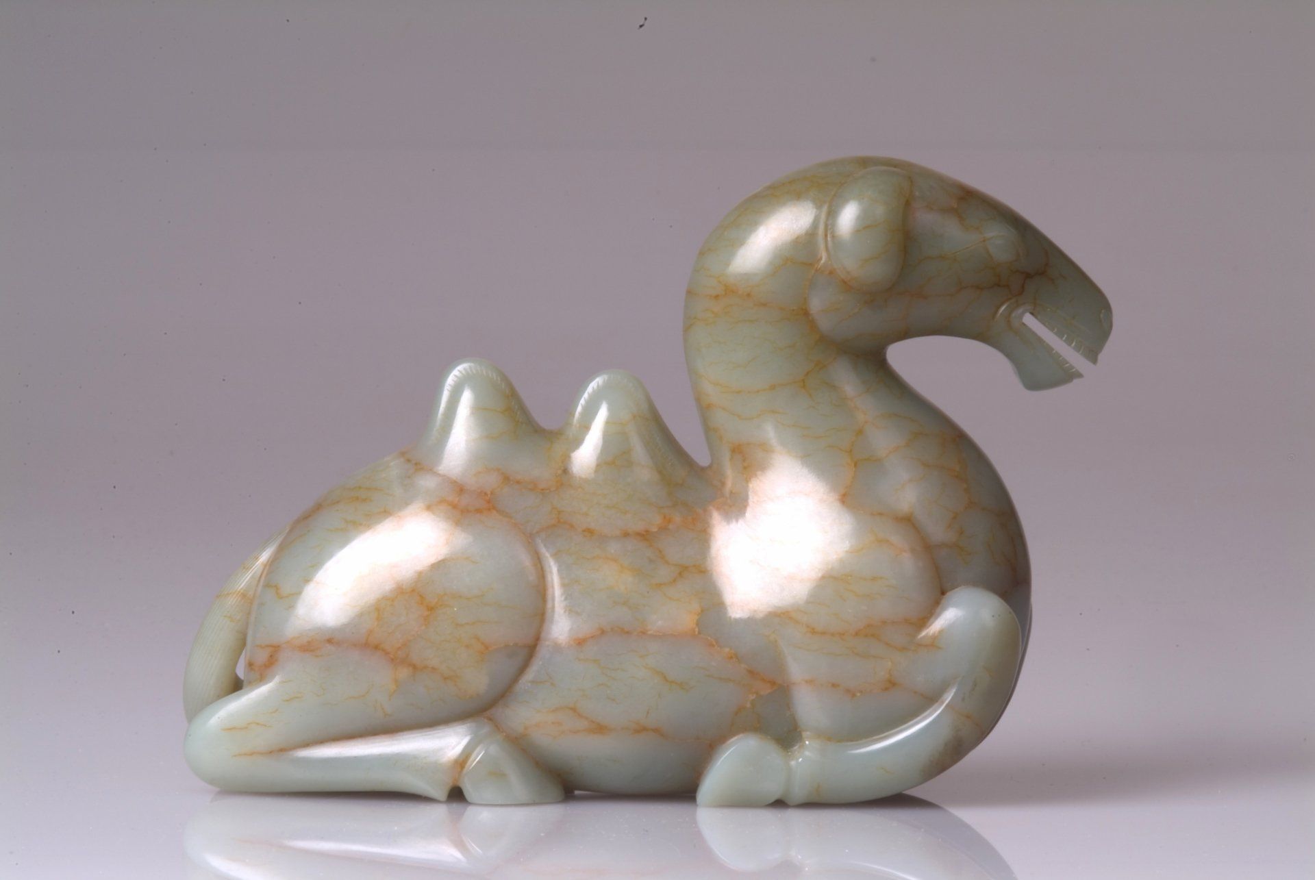 تمثال الجمل المستلقي هذا مصنوع من اليشم الرمادي خلال فترة الأسر الستة