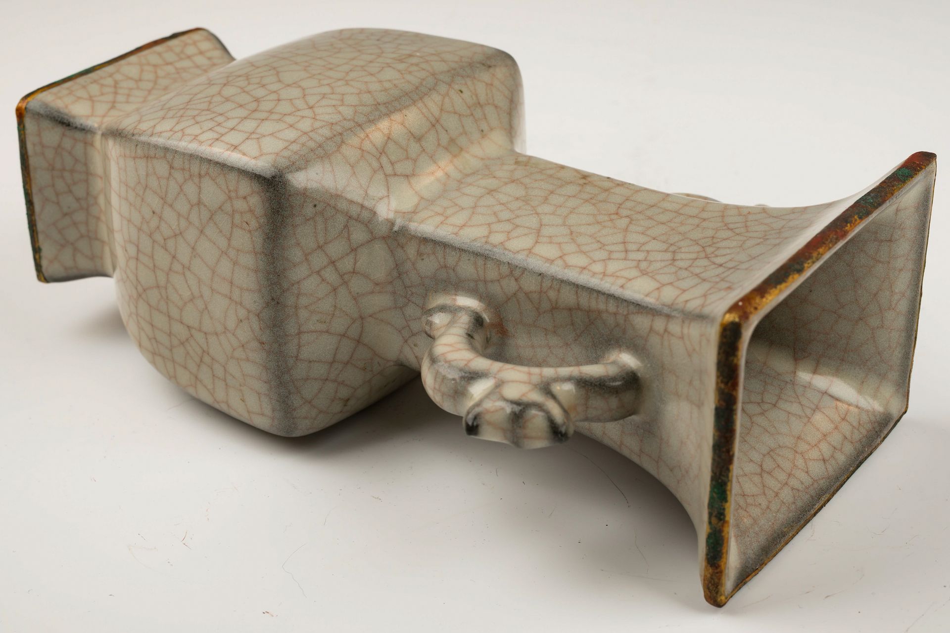 Offizielle Guan-Ware-Vase aus der Südlichen Song-Dynastie: Craquelé-Finish mit feuervergoldeten Bändern und Henkeln aus dem kaiserlichen Guan-Brennofen