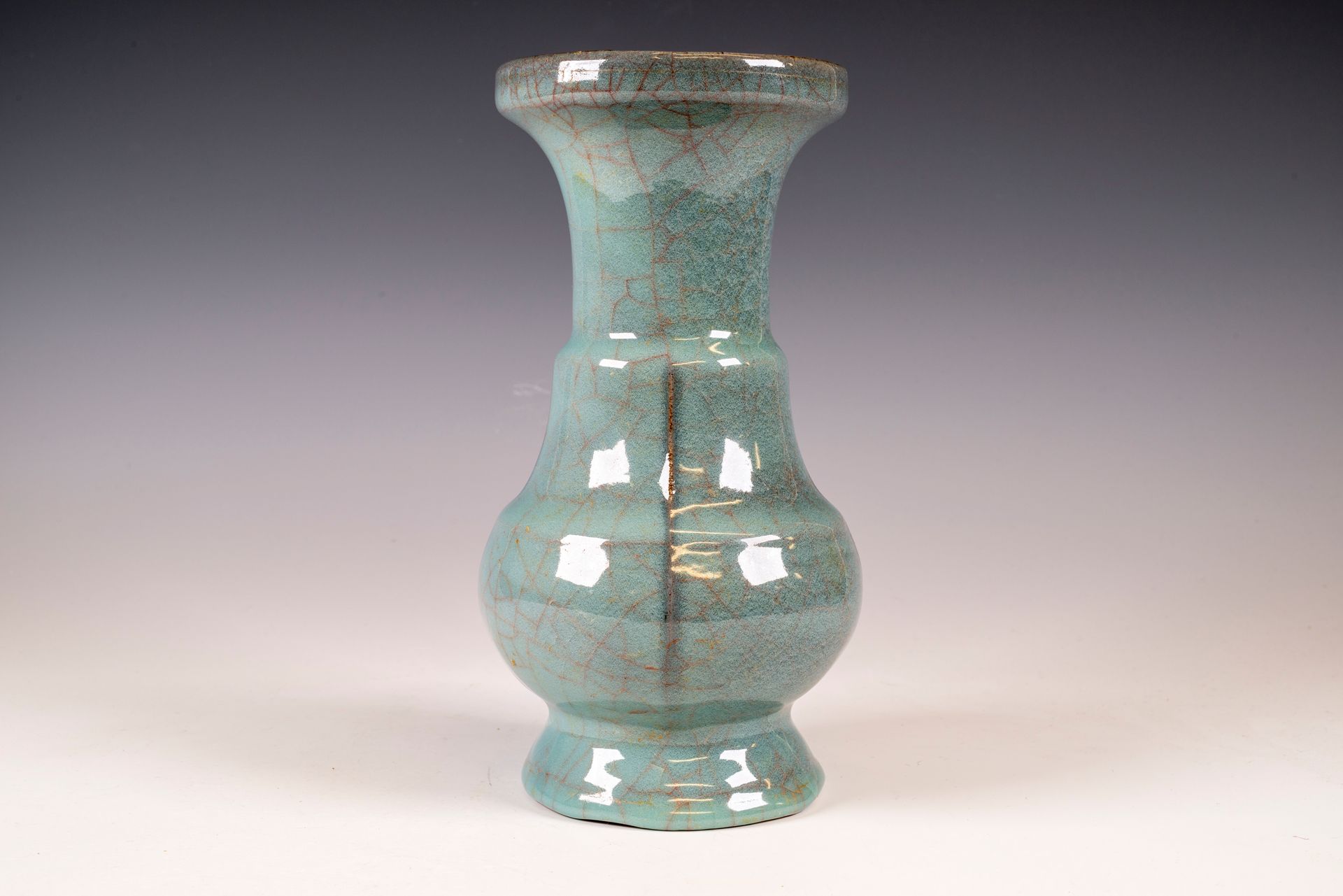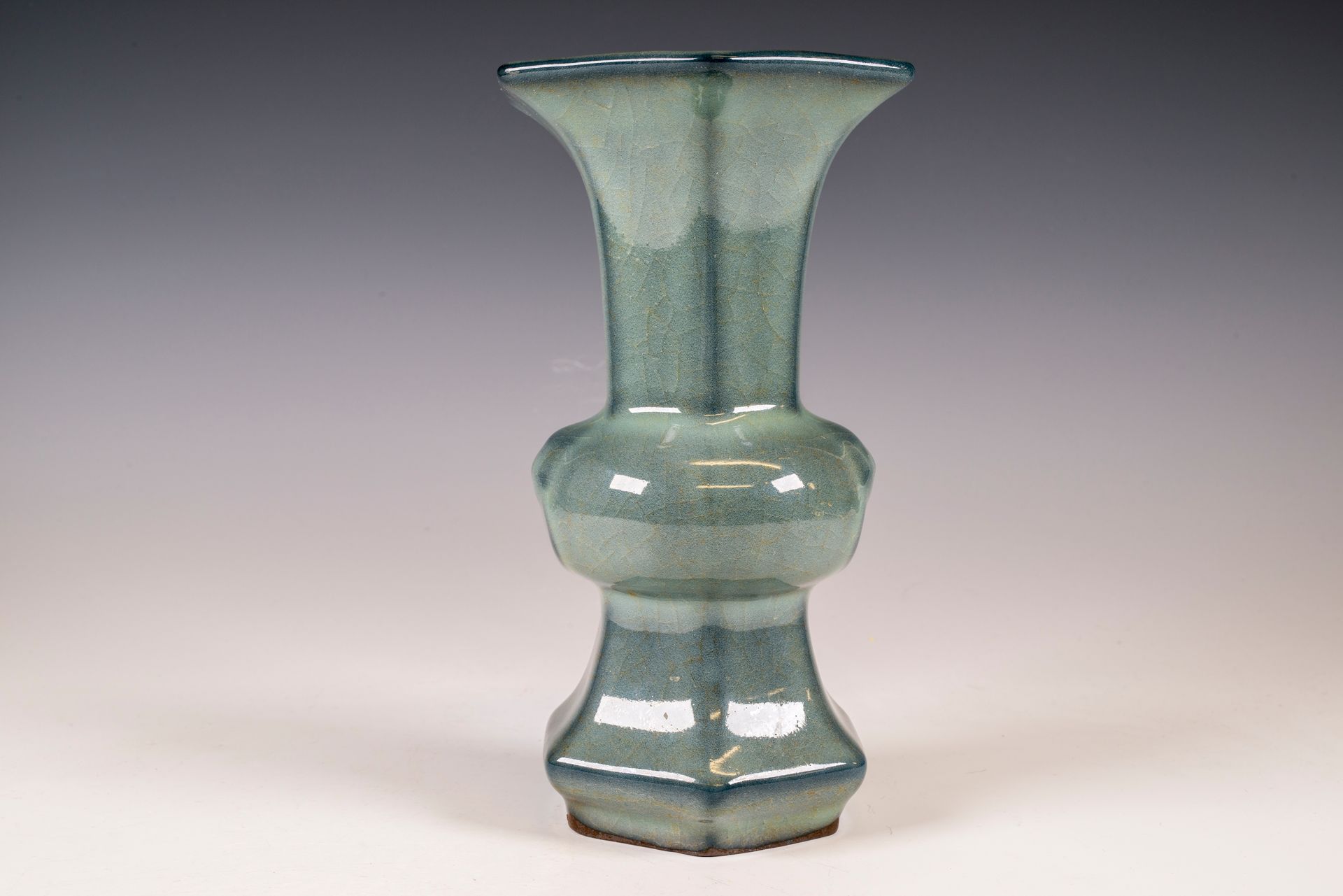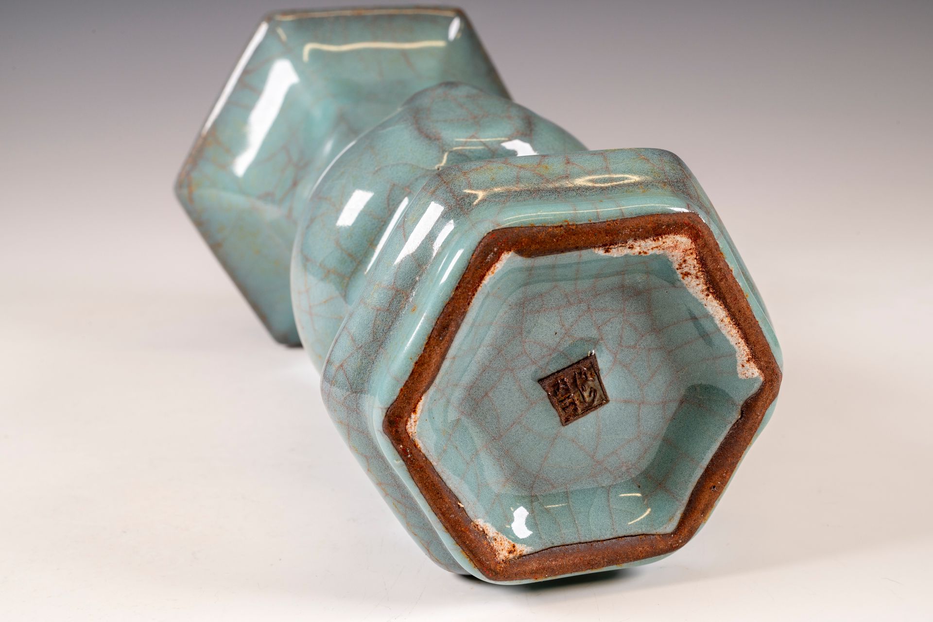Offizielle sechseckige Guan-Vase aus der Zeit der Südlichen Song-Dynastie, hergestellt im inneren Brennofen, gemarkt und datiert aus der Kaiserlichen Guan-Ware-Periode.