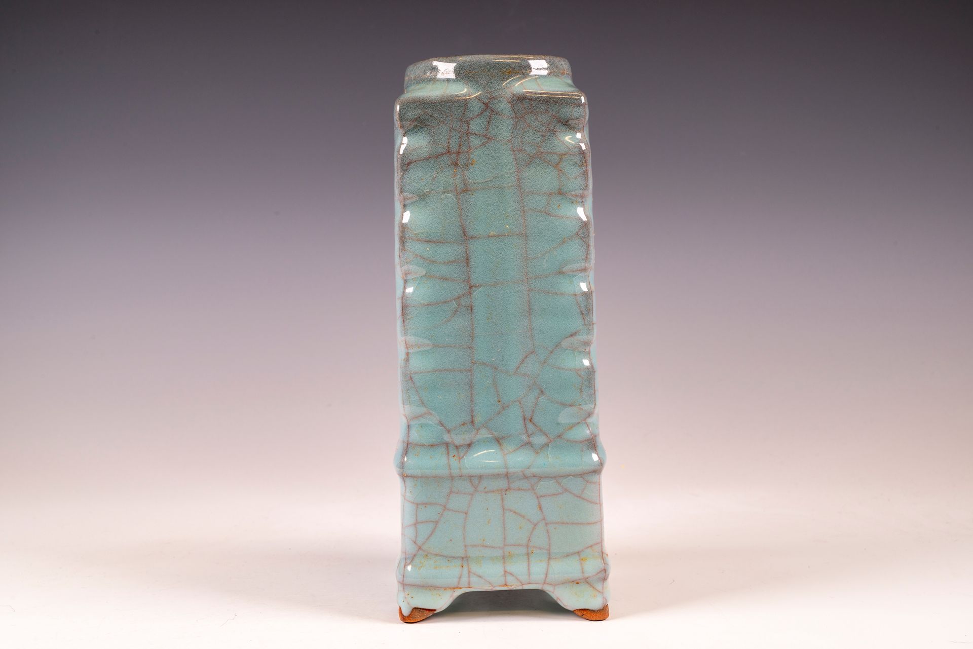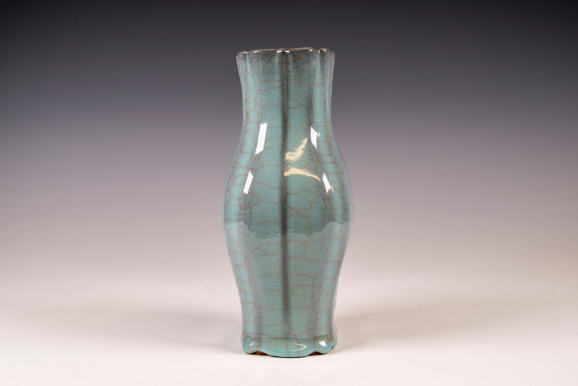 Quadratisch gerippte Vase aus der Zeit der Südlichen Song-Dynastie, hergestellt im kaiserlichen Guan-Waren-Stil der Xiuneisi-Innenbrennofenmarke der Guan-Ware.