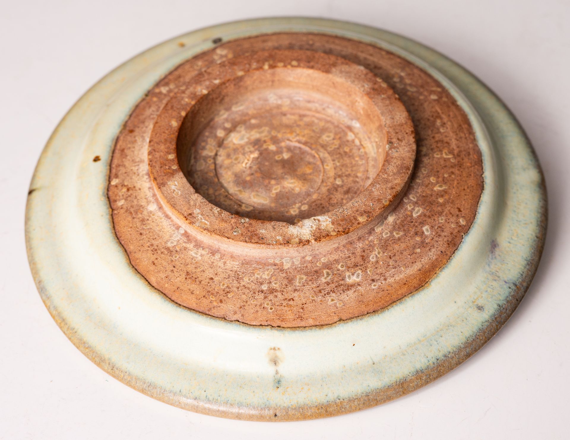 Milchig-hellblau glasierte flache Jun-Schale aus der Nördlichen Song-Dynastie / Jin-Dynastie