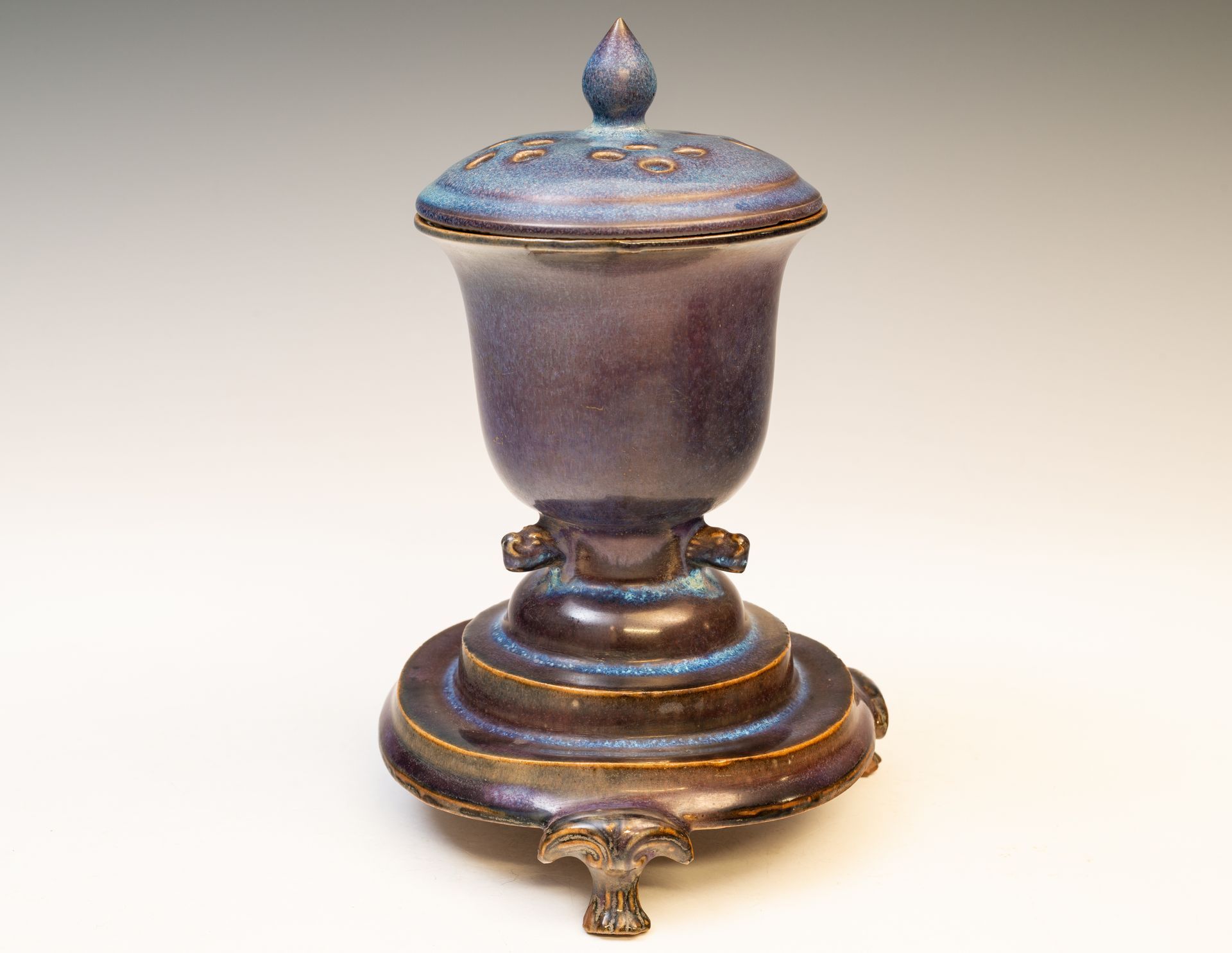 Räuchergefäß aus dem Jun-Ofen der Nördlichen Song-Dynastie: Dreibeiniges Design in rötlich-violetter Farbe