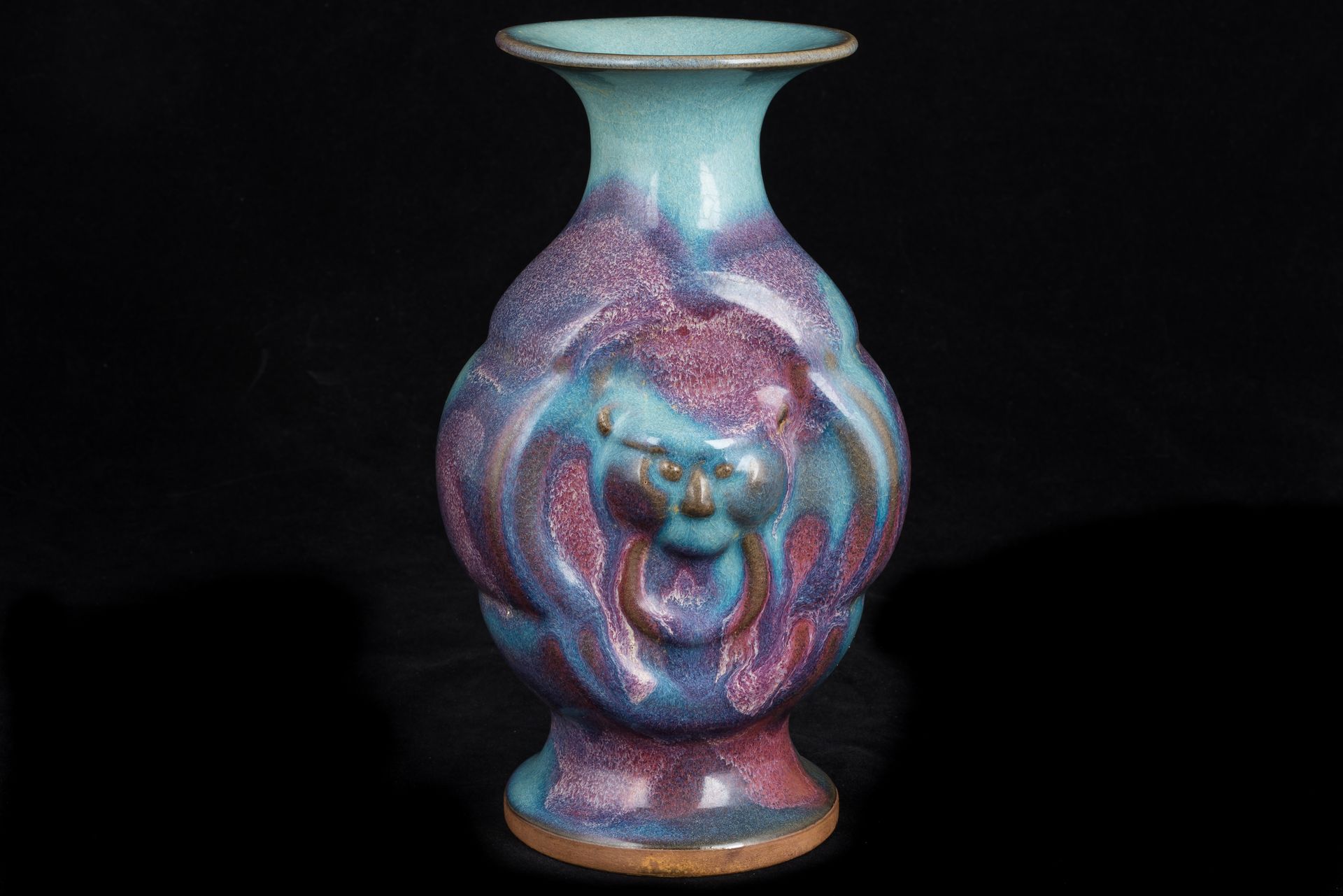 Jun-Ware-Vase aus der Nördlichen Song-Dynastie mit eingeprägtem Tigerkopfdekor