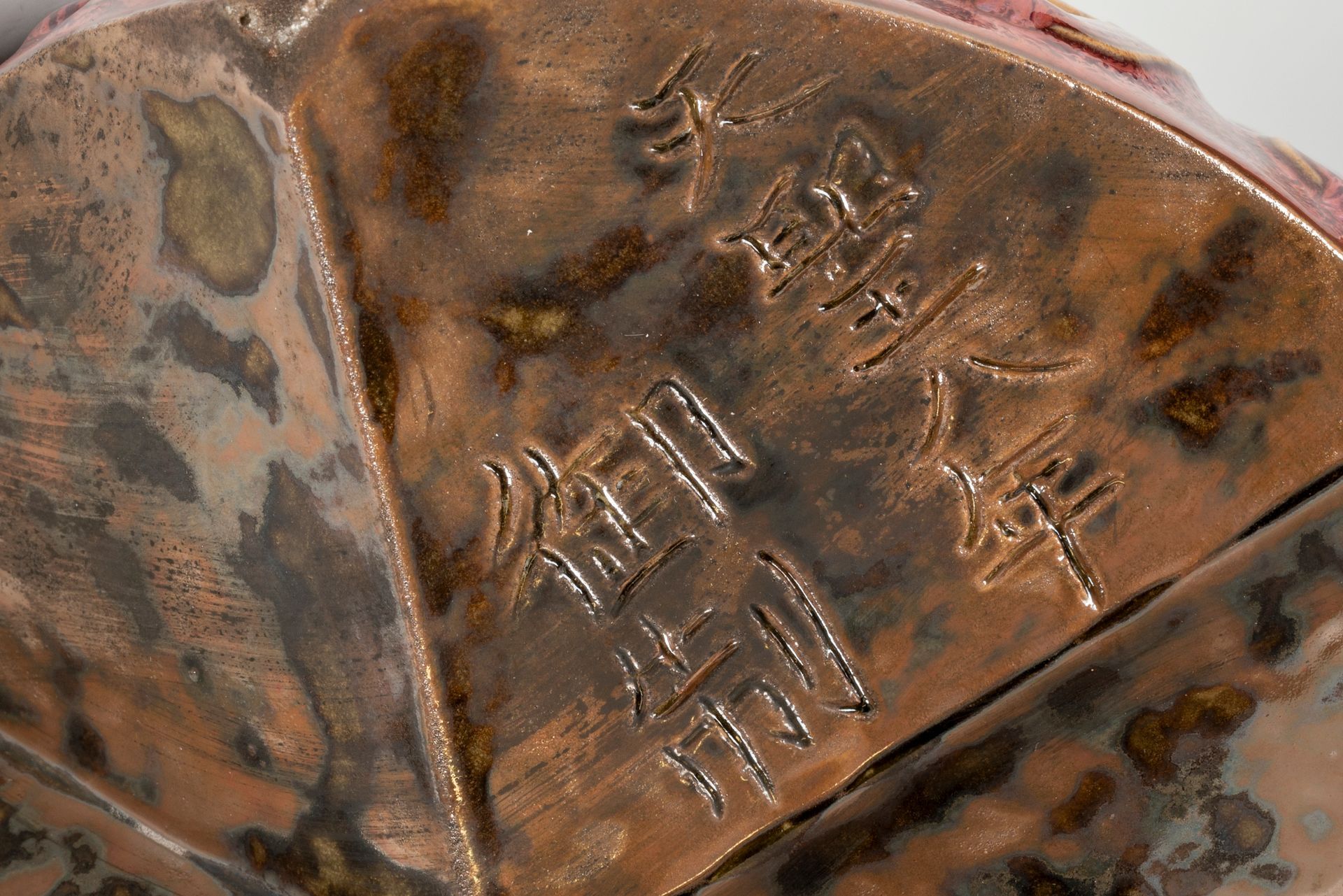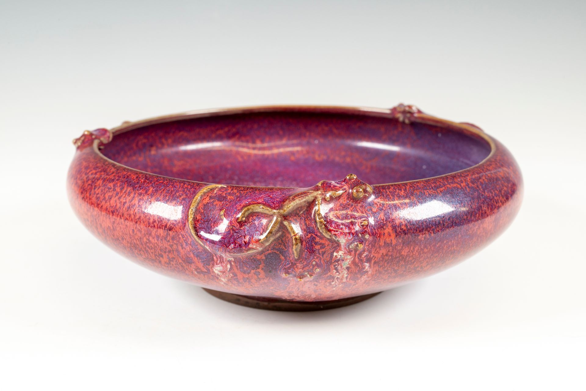 Jun-Keramik aus der Zeit der Nördlichen Song-Dynastie mit Chi-Drachen-Motiven und rötlich-violetten Pinselunterlegscheiben