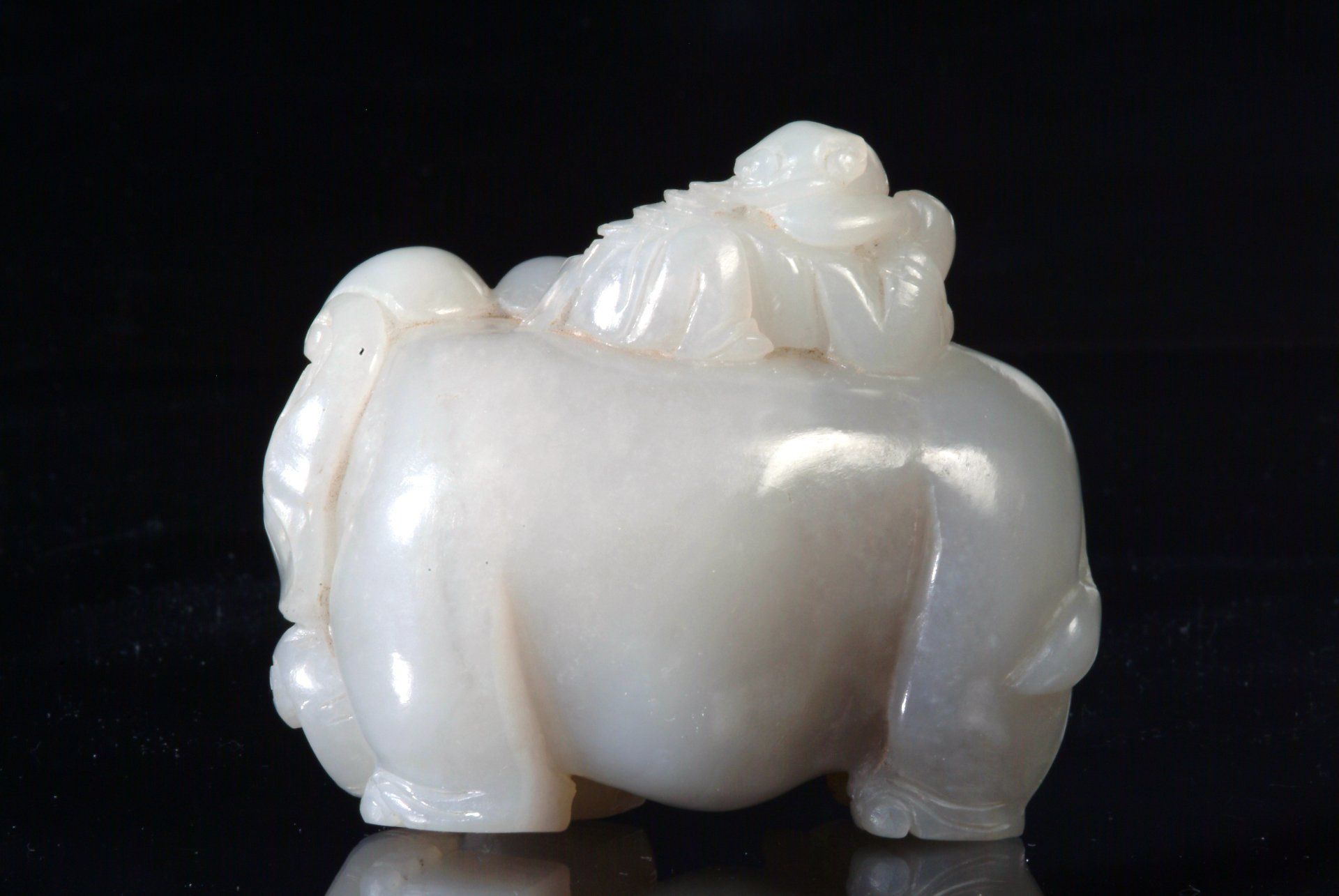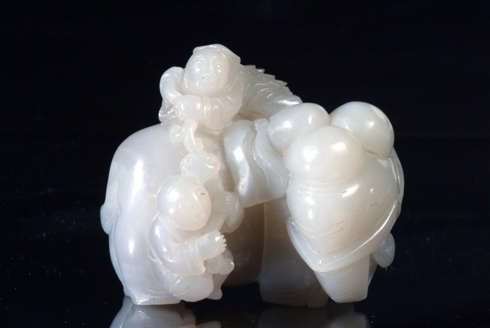 Weiße Jade-Elefantenfigur mit Kindern aus der Qing-Dynastie