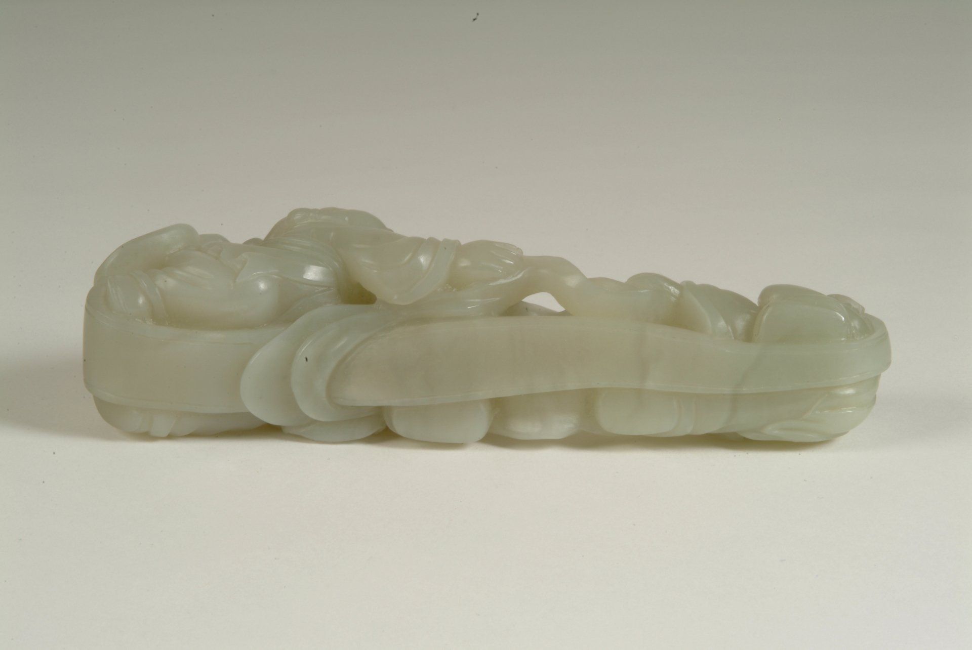 Grauweißes Jade-Zepter mit drei Jünglingsfiguren