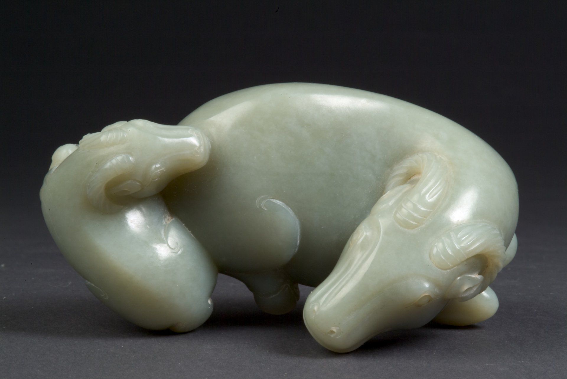 Weißes Jade-Widder-Ensemble aus der Qing-Dynastie