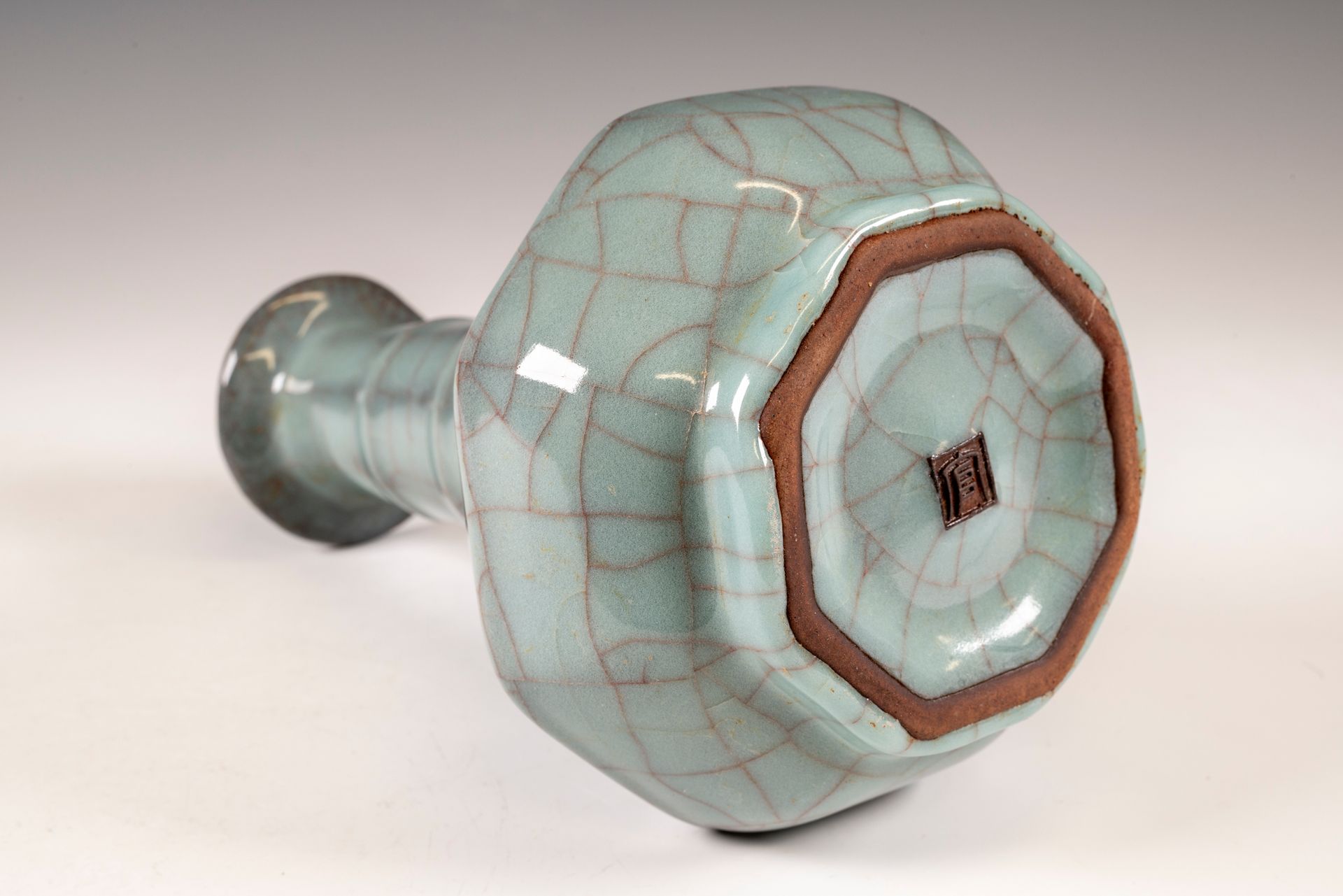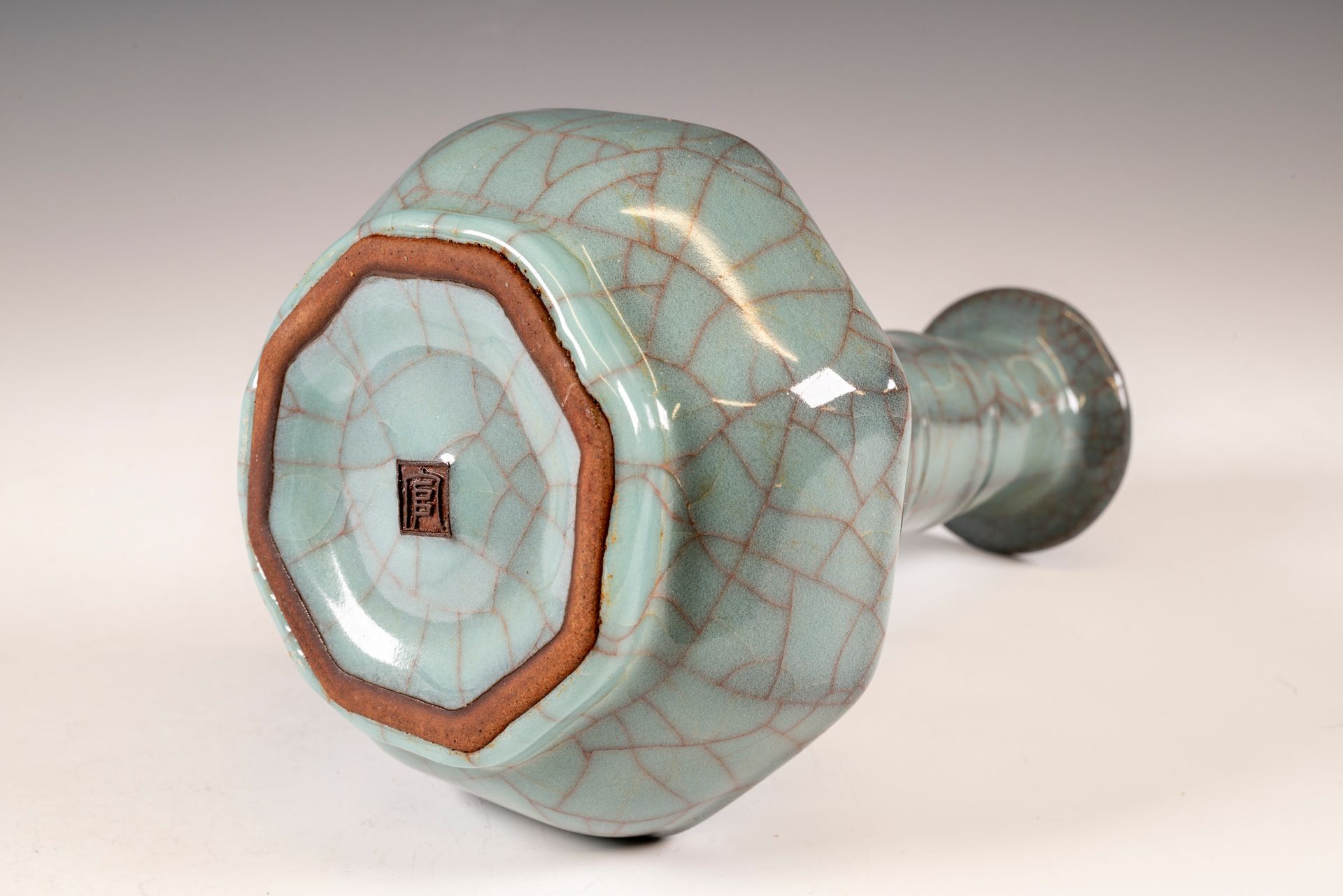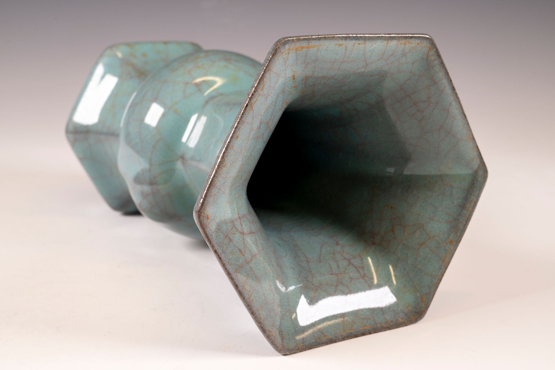 Jarrón hexagonal Guan de horno interior oficial de la dinastía Song del Sur, marcado y datado del período imperial Guan.