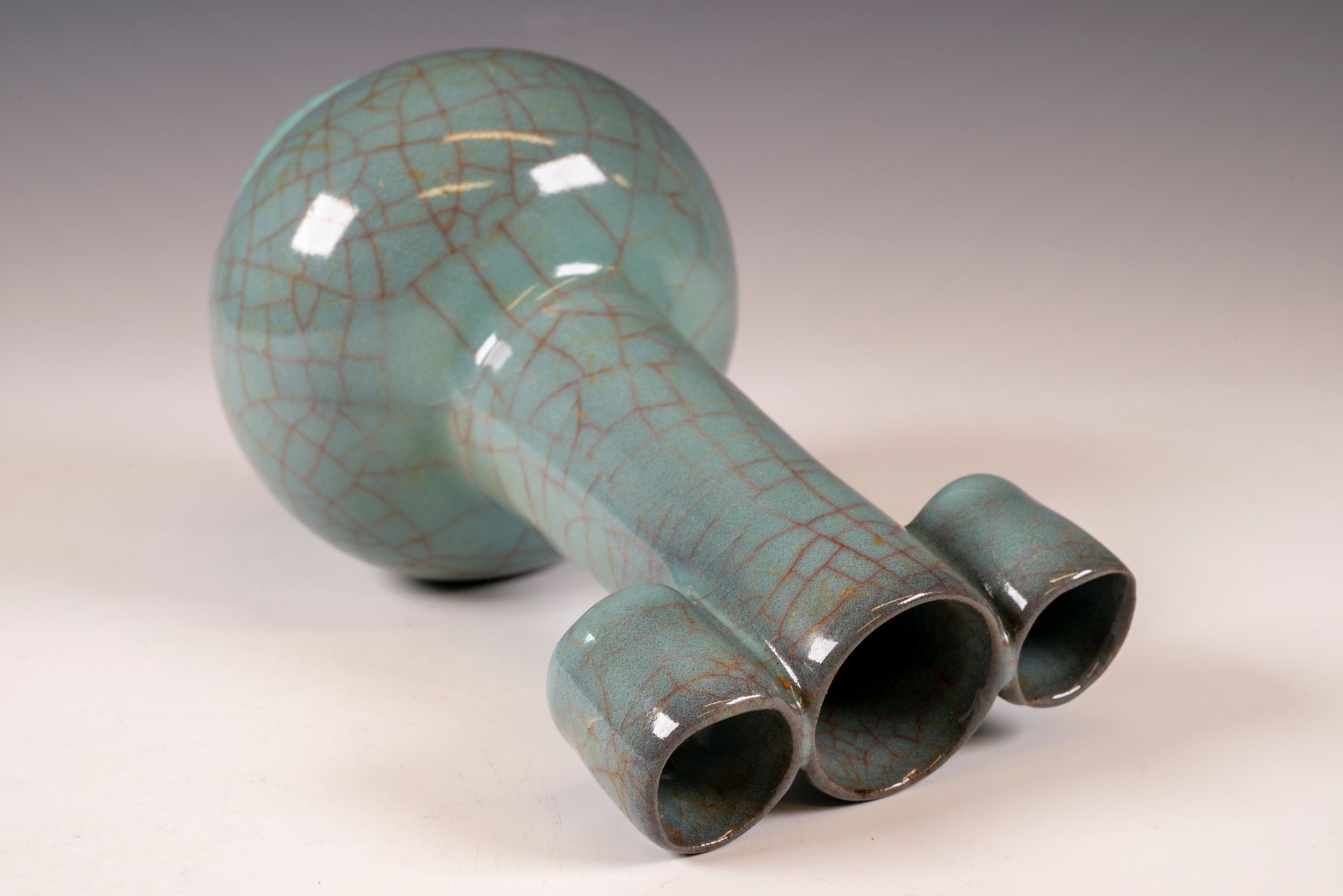 Cerámica Guan Yao oficial de la dinastía Song del Sur, horno interior de Xiuneisi, imperial: jarrón de botella de calabaza doble, marcado y de época