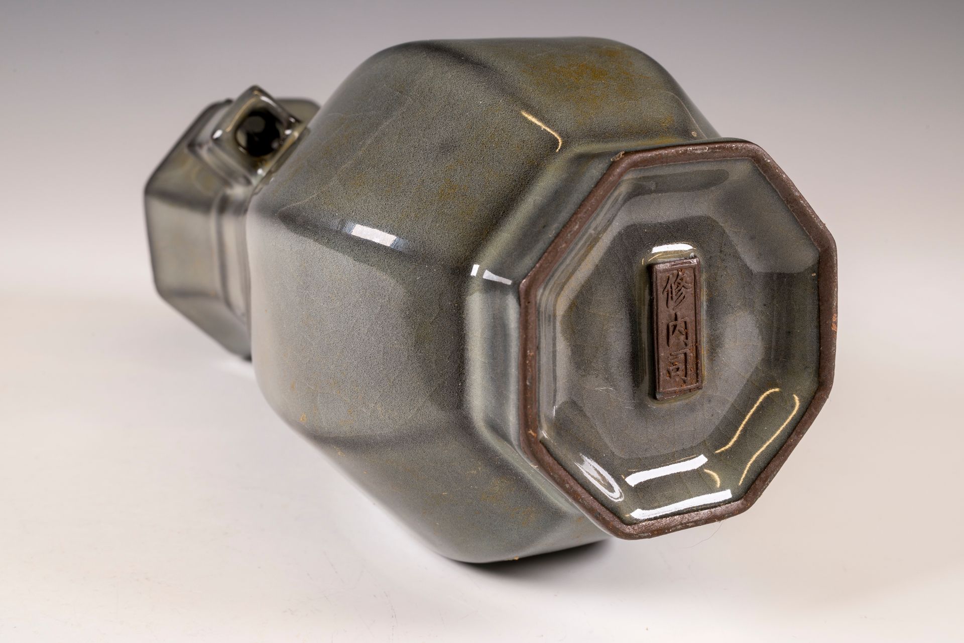 Jarrón octogonal oficial en forma de Hu de la cerámica imperial Guan de la dinastía Song del Sur, marcado y producido por Xiuneisi Inner Kiln