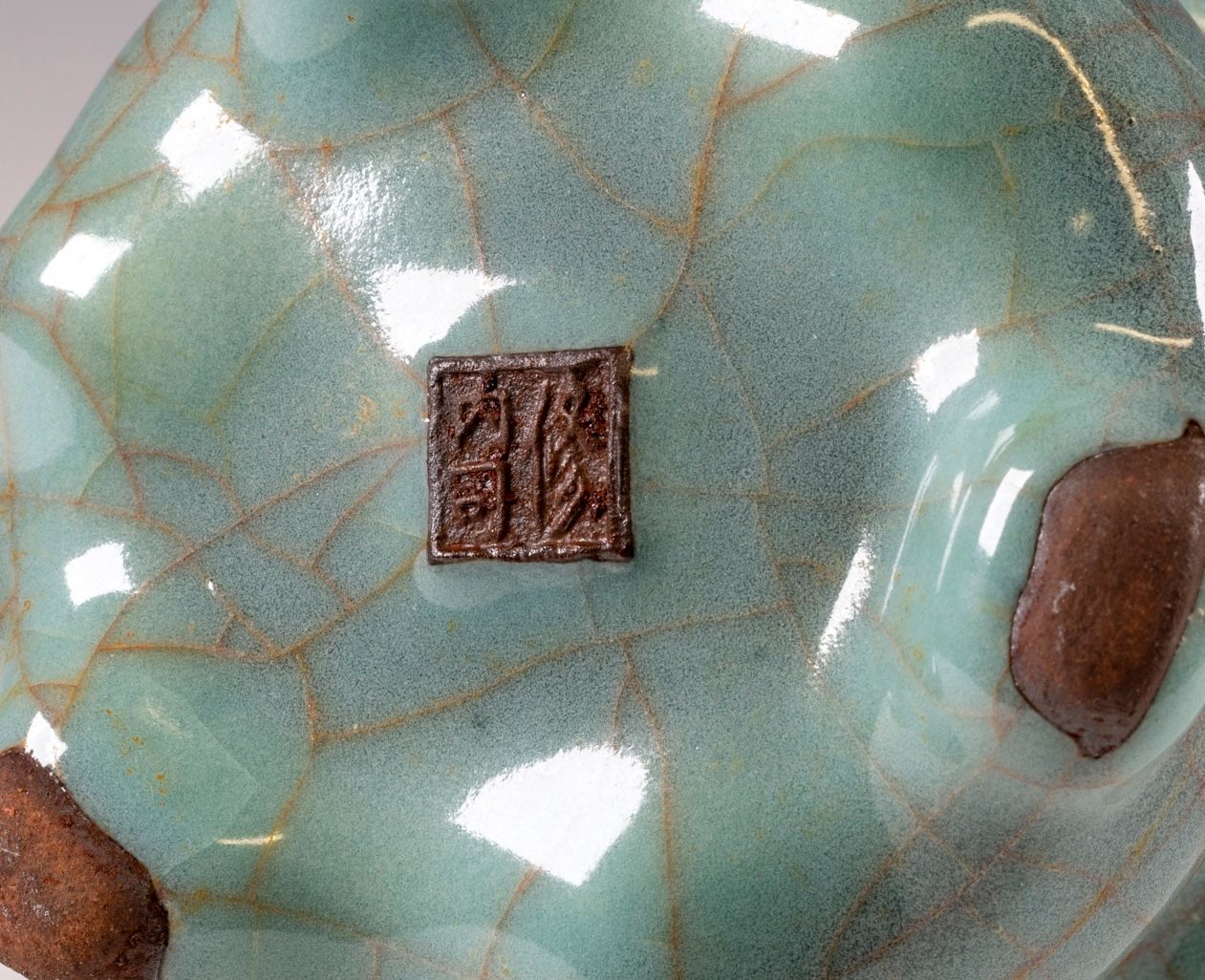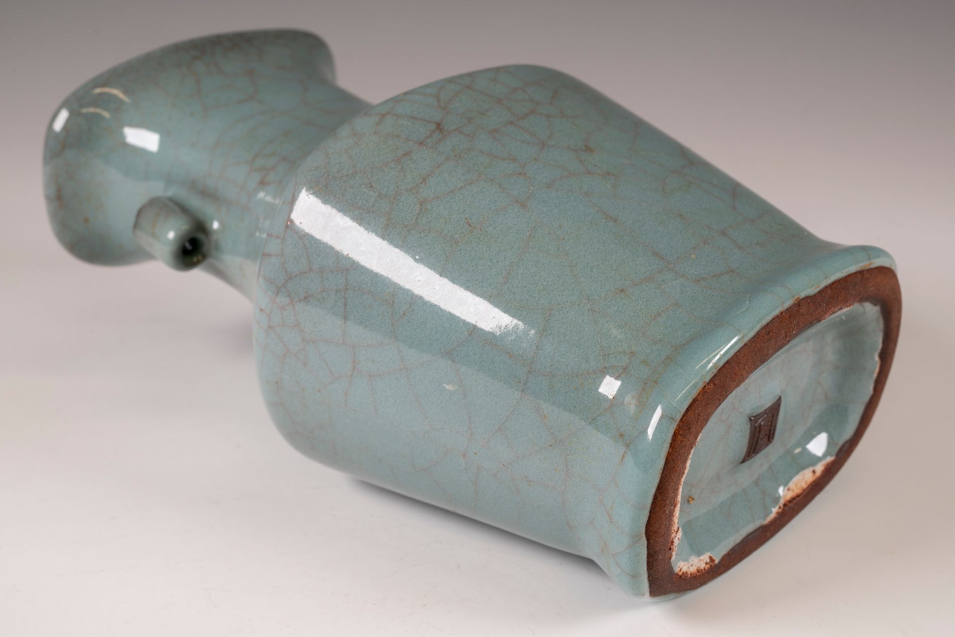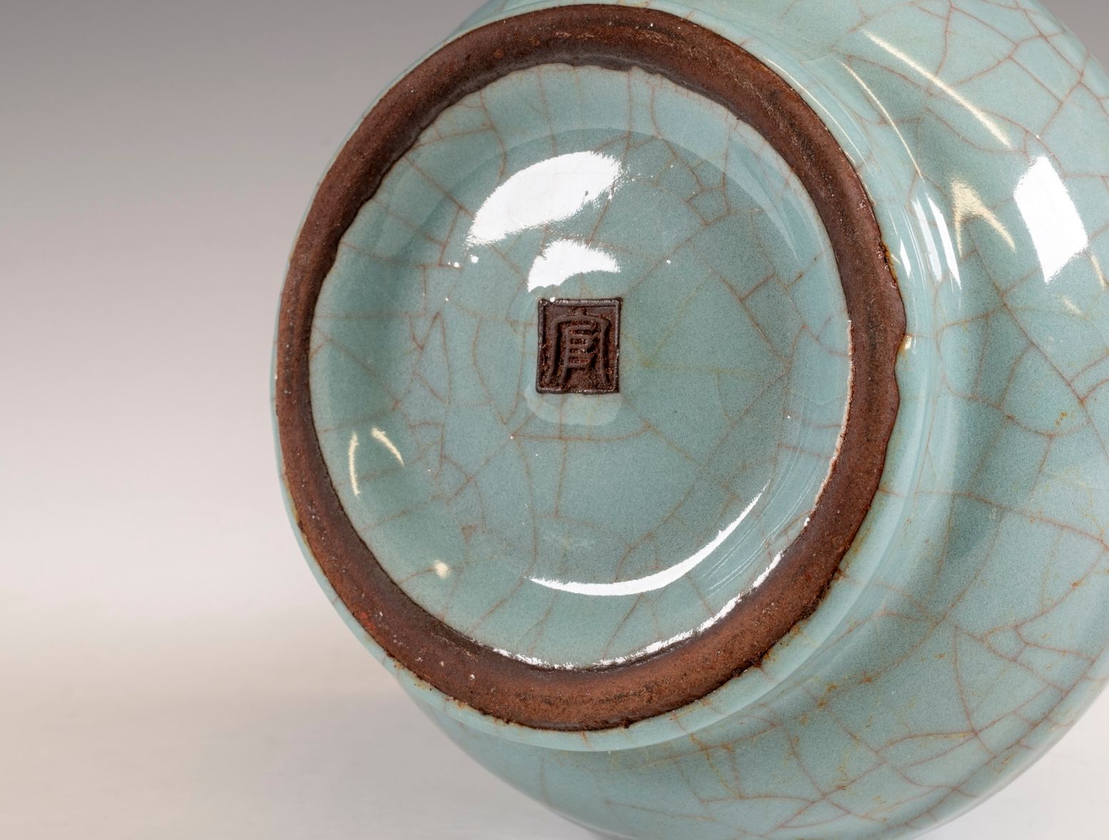 Jarrón imperial Guan de Xiuneisi, de la dinastía Song del Sur, con marcas del período de producción.