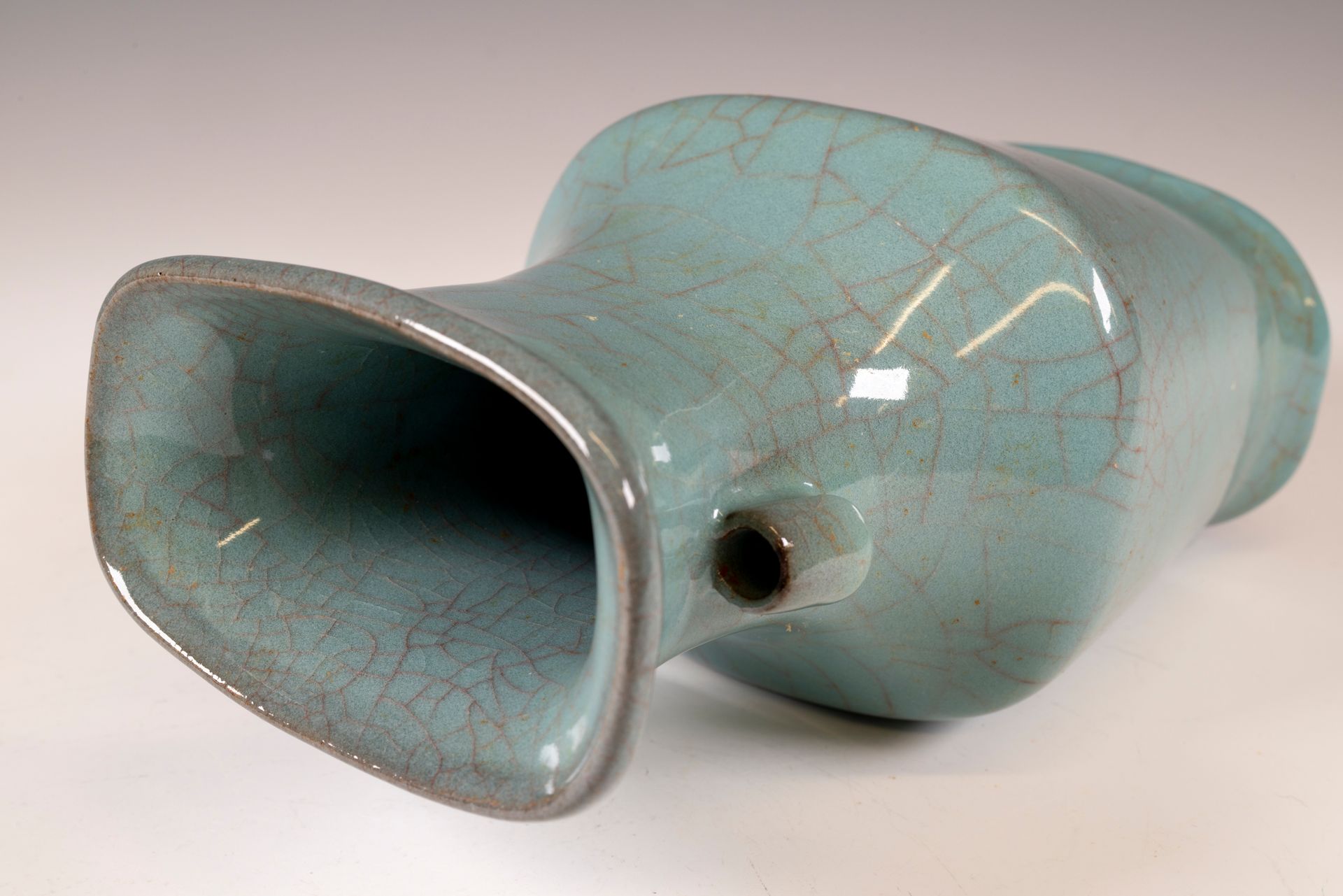 Jarrón con asas de elefante Guan elaborado en el horno interior oficial de Xiuneisi para la Corte Imperial de la Dinastía Song del Sur