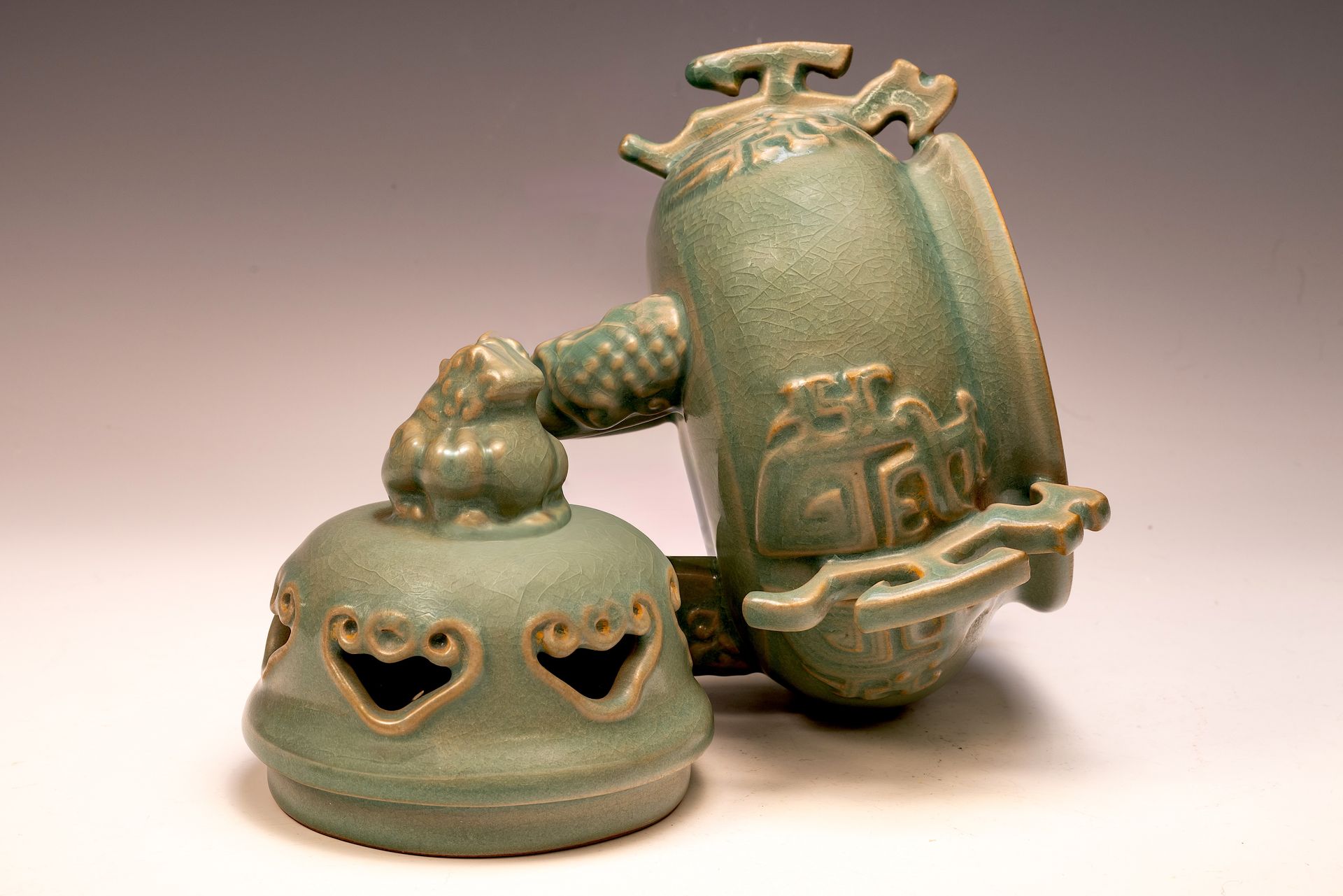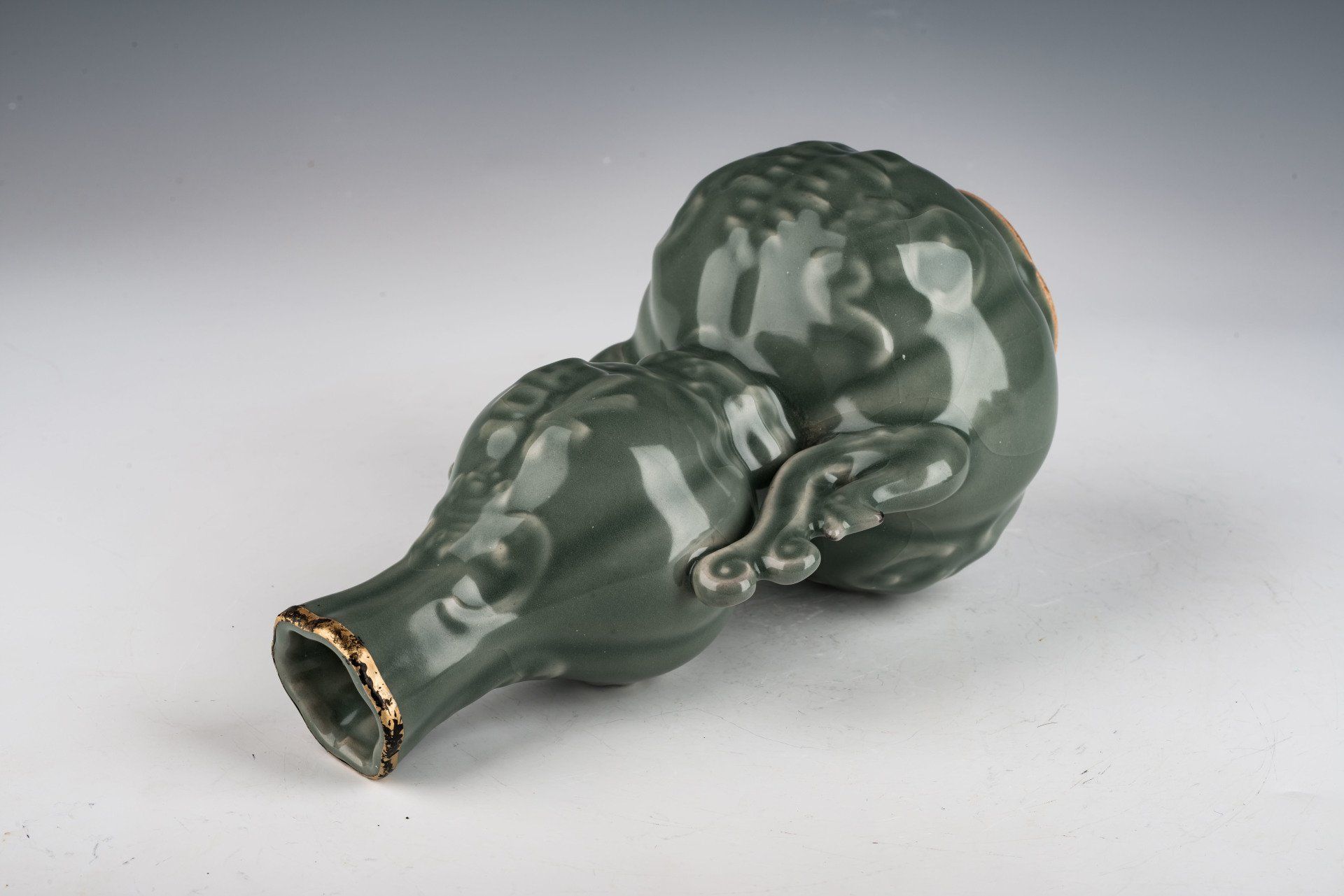 Segundo jarrón con cabeza de carnero encargado de la dinastía Song del Norte, con cerámica imperial Ru