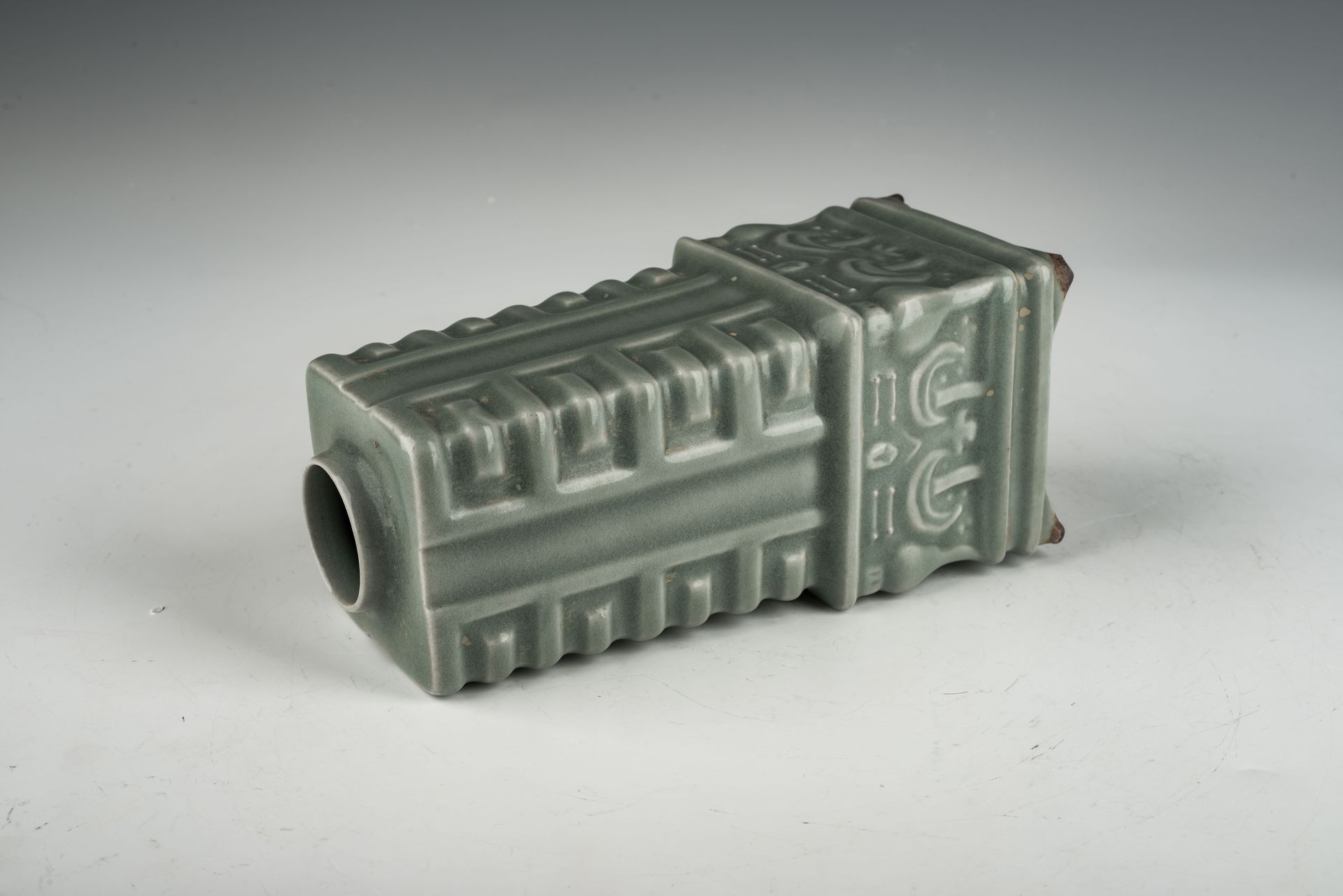 Jarrón imperial real Ru-Kiln de la dinastía Song del Norte: diseño rectangular con asas tubulares, segundo encargo
