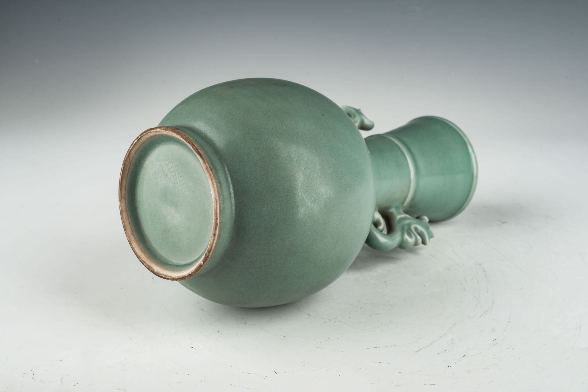 Segundo jarrón oficial de cerámica Ru Imperial con asas de dragón de la dinastía Song del Norte.