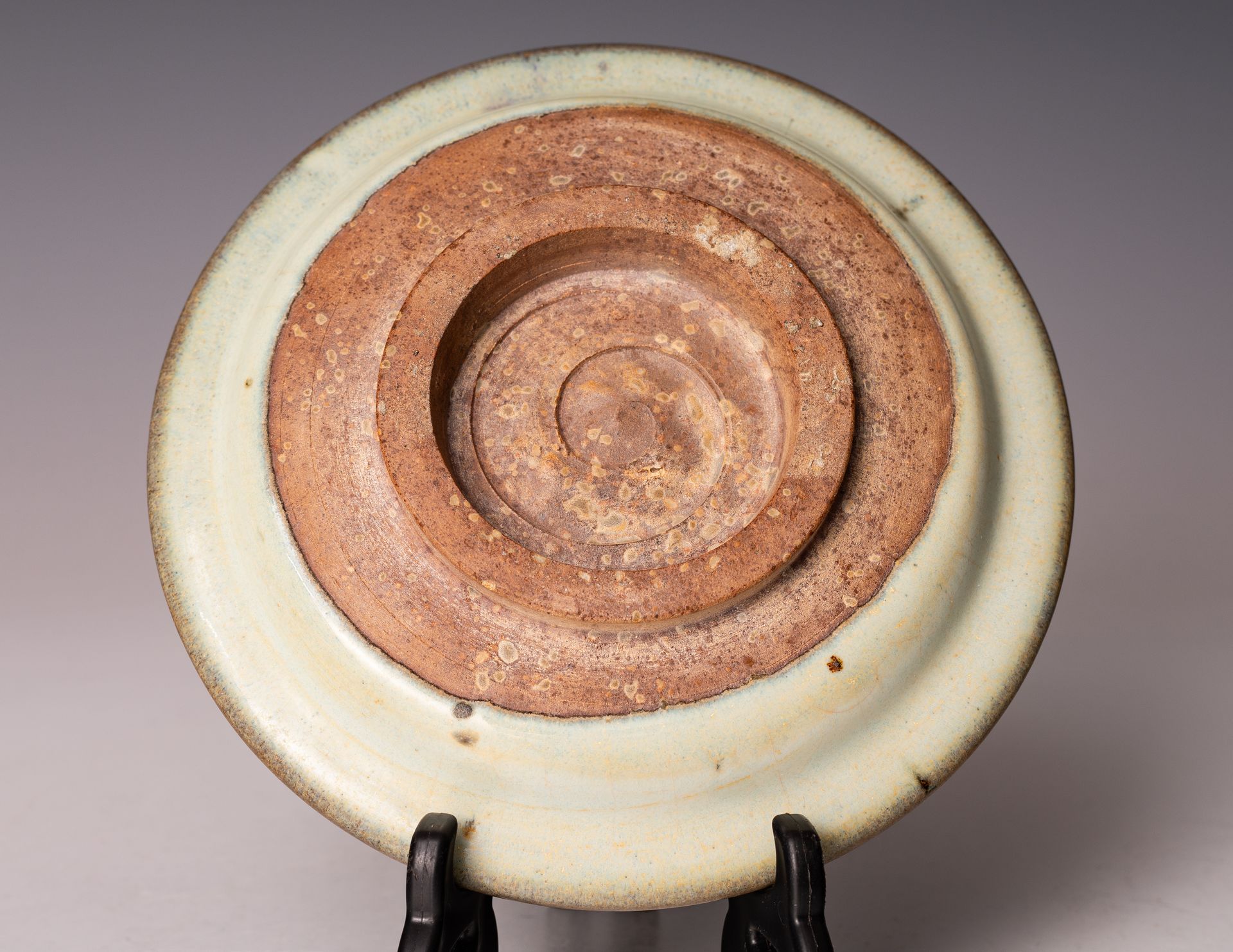 Plato poco profundo de la dinastía Yuan con esmalte blanco y tonos pálidos.