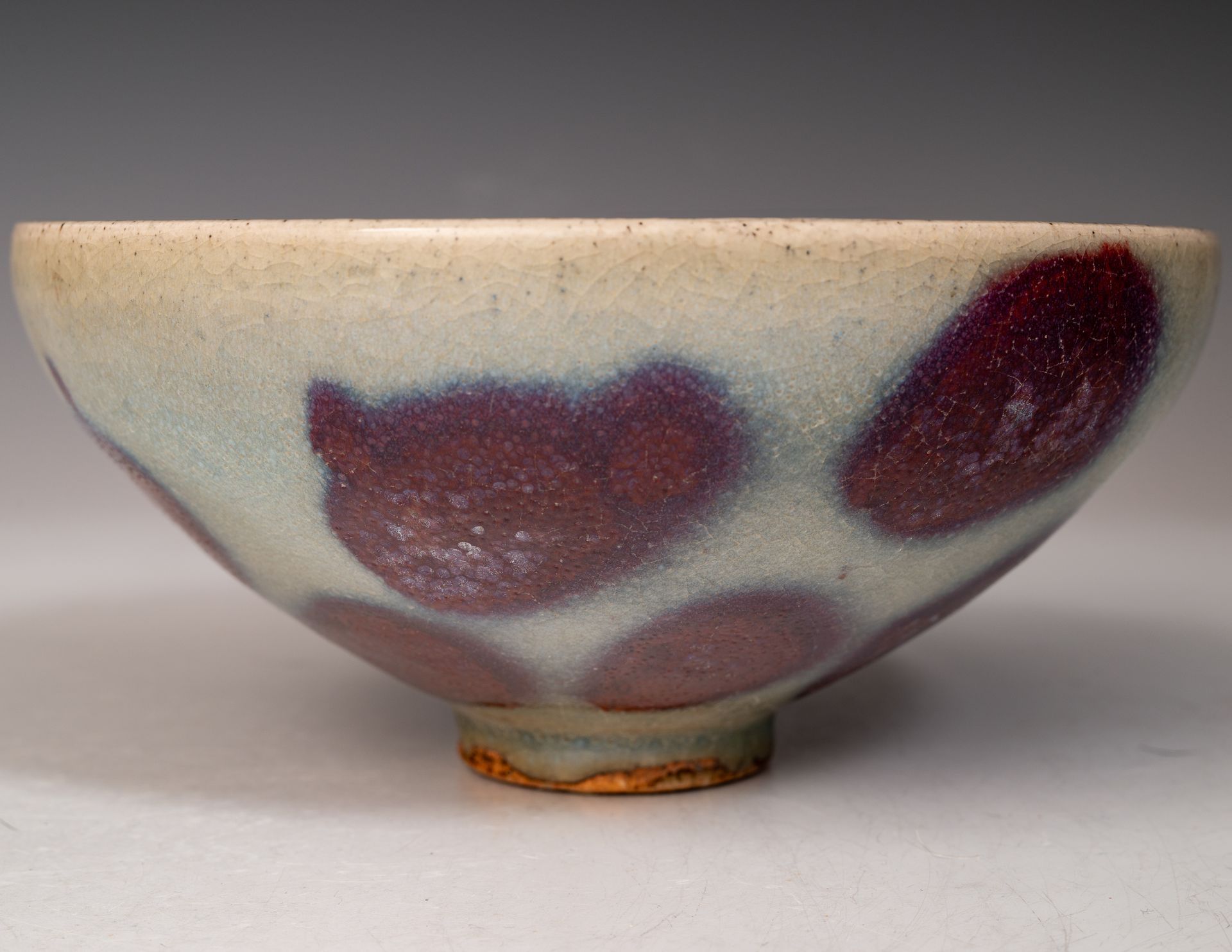 Cuenco Jun de la dinastía Yuan con prominentes salpicaduras moradas