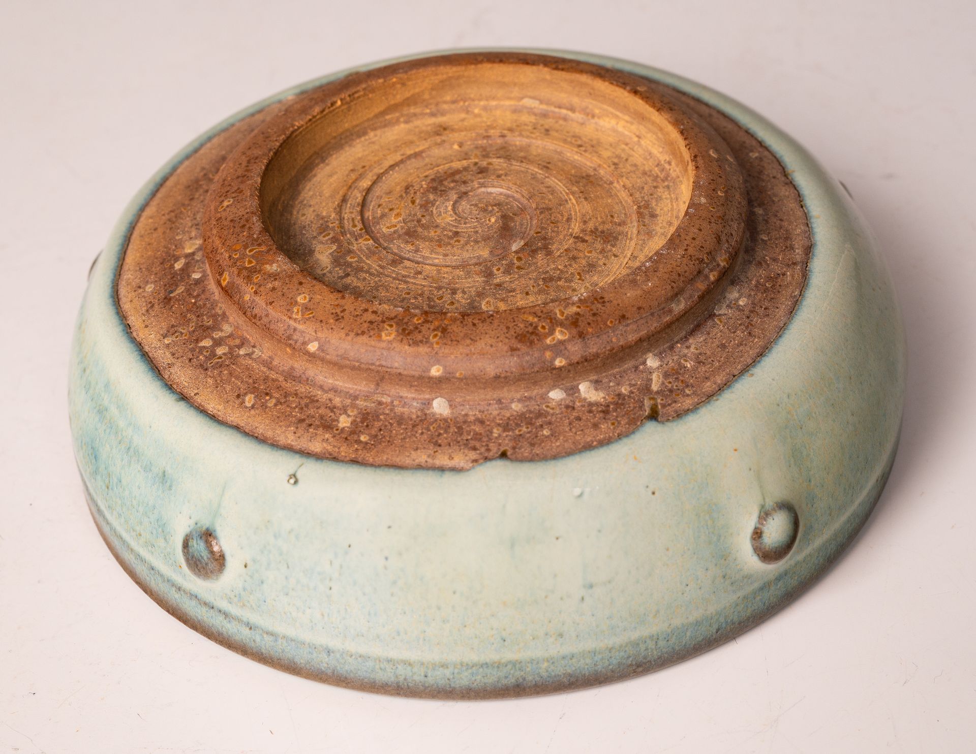 Dinastías Song/Jin del Norte: Este plato Jun poco profundo está decorado uniformemente con un delicado esmalte azul pálido lechoso que gradualmente adquiere un tono hongo a lo largo del borde. La base presenta tres marcas distintivas de espuelas. El plato tiene un diámetro de 18 cm. ppjrs