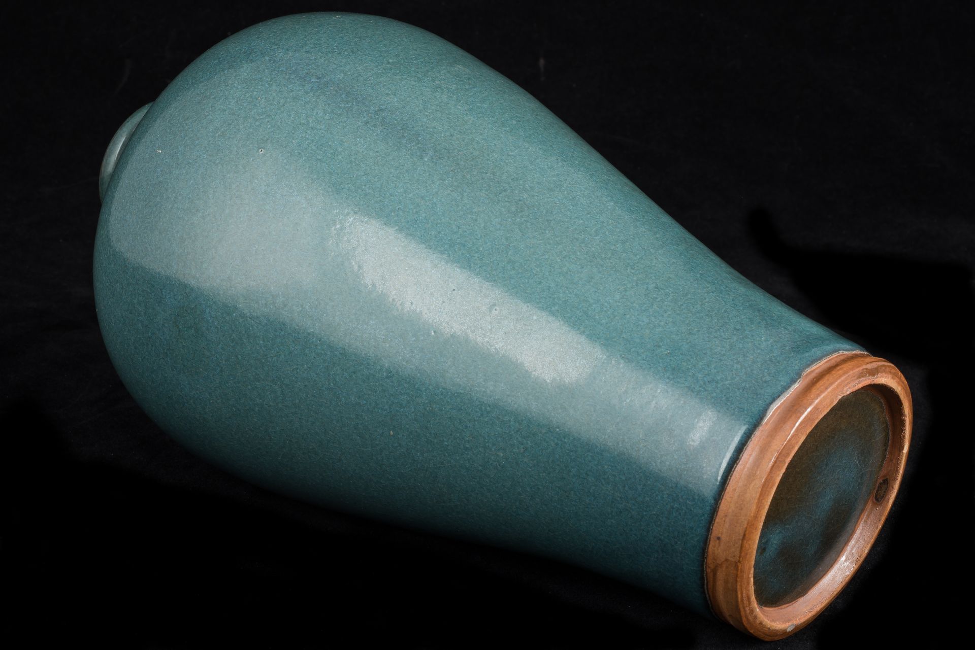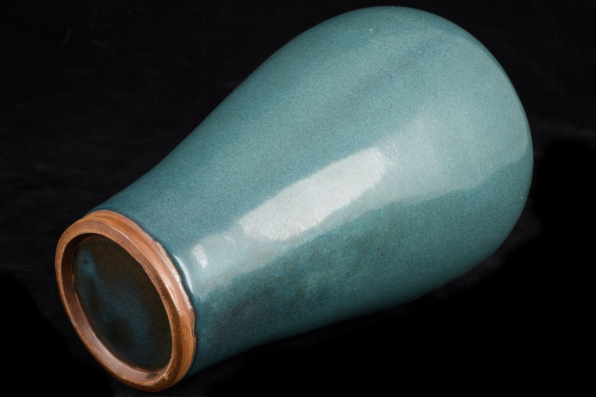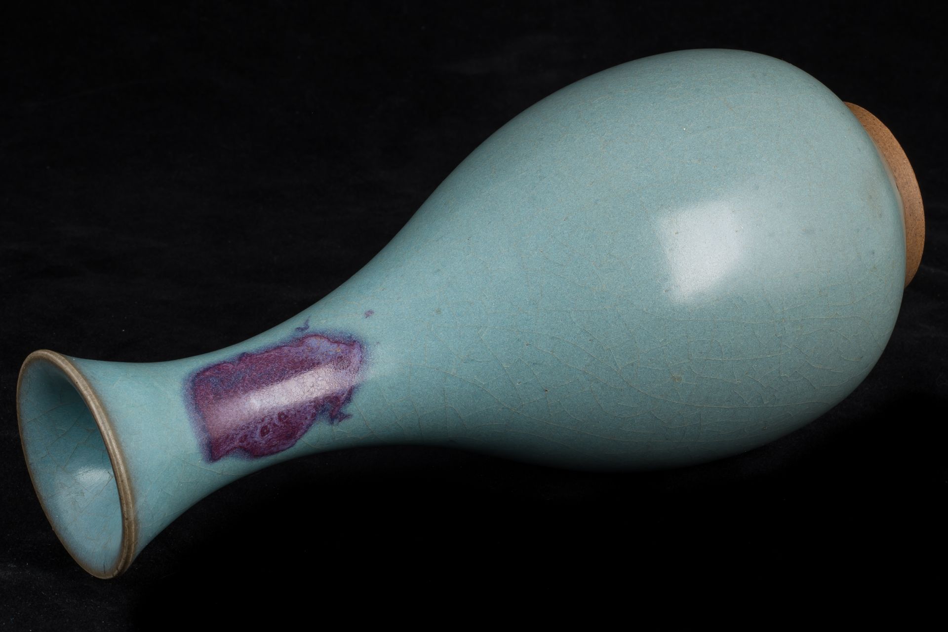 Jarrón azul de cuello largo en forma de pera Jun Ware del norte