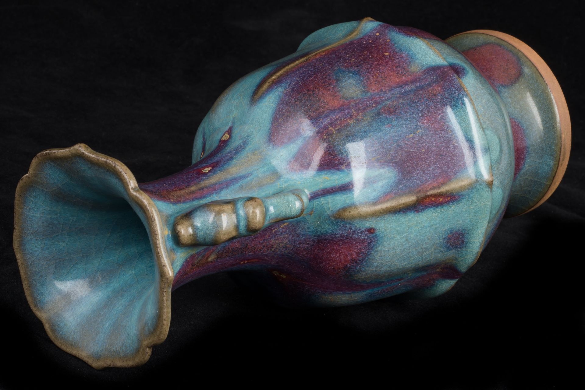Jarrón Jun Ware con asas de dragón del horno Jun de la dinastía Song del Norte