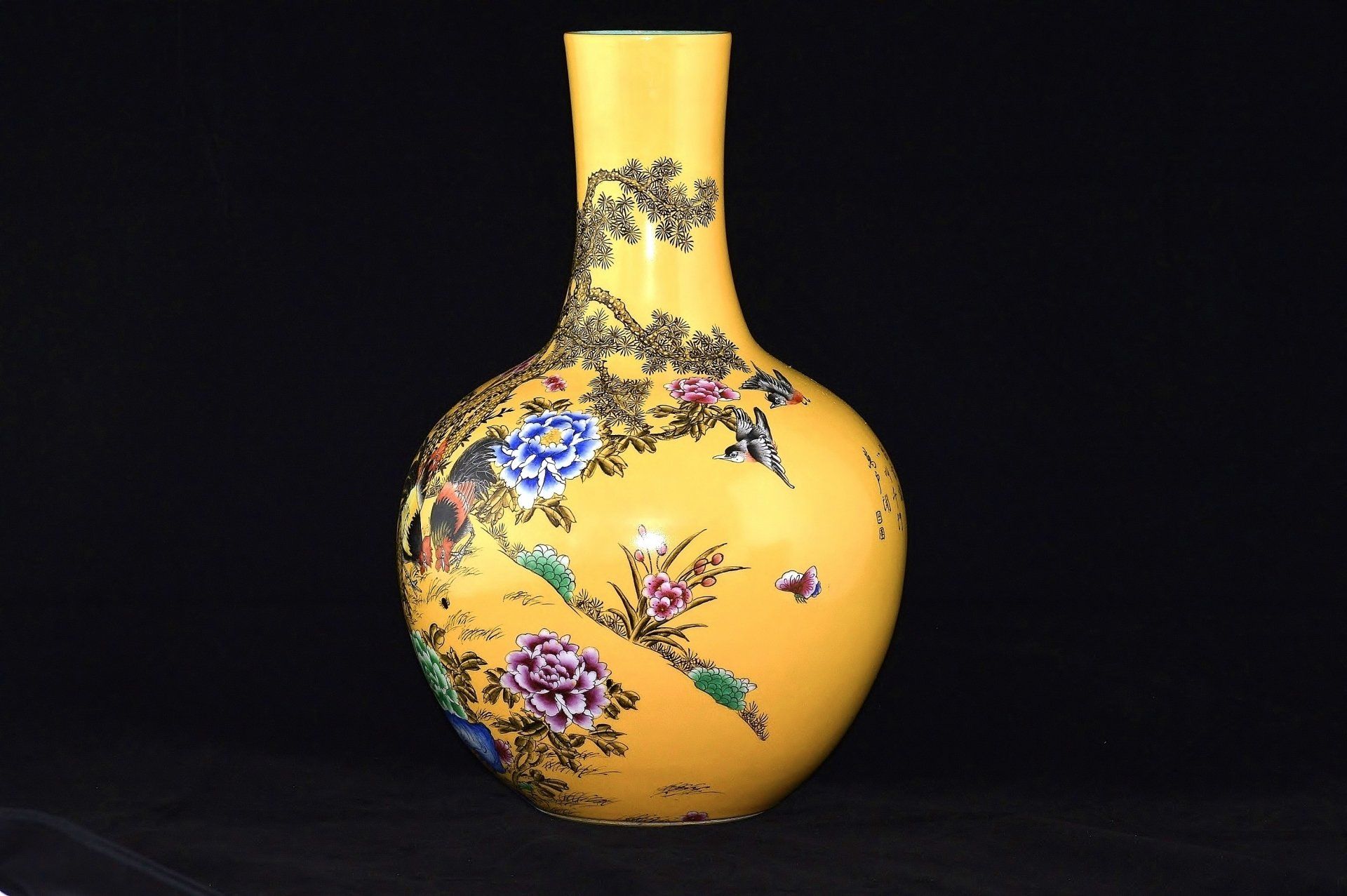 Jarrón amarillo yema de huevo con sello imperial del período Qianlong
