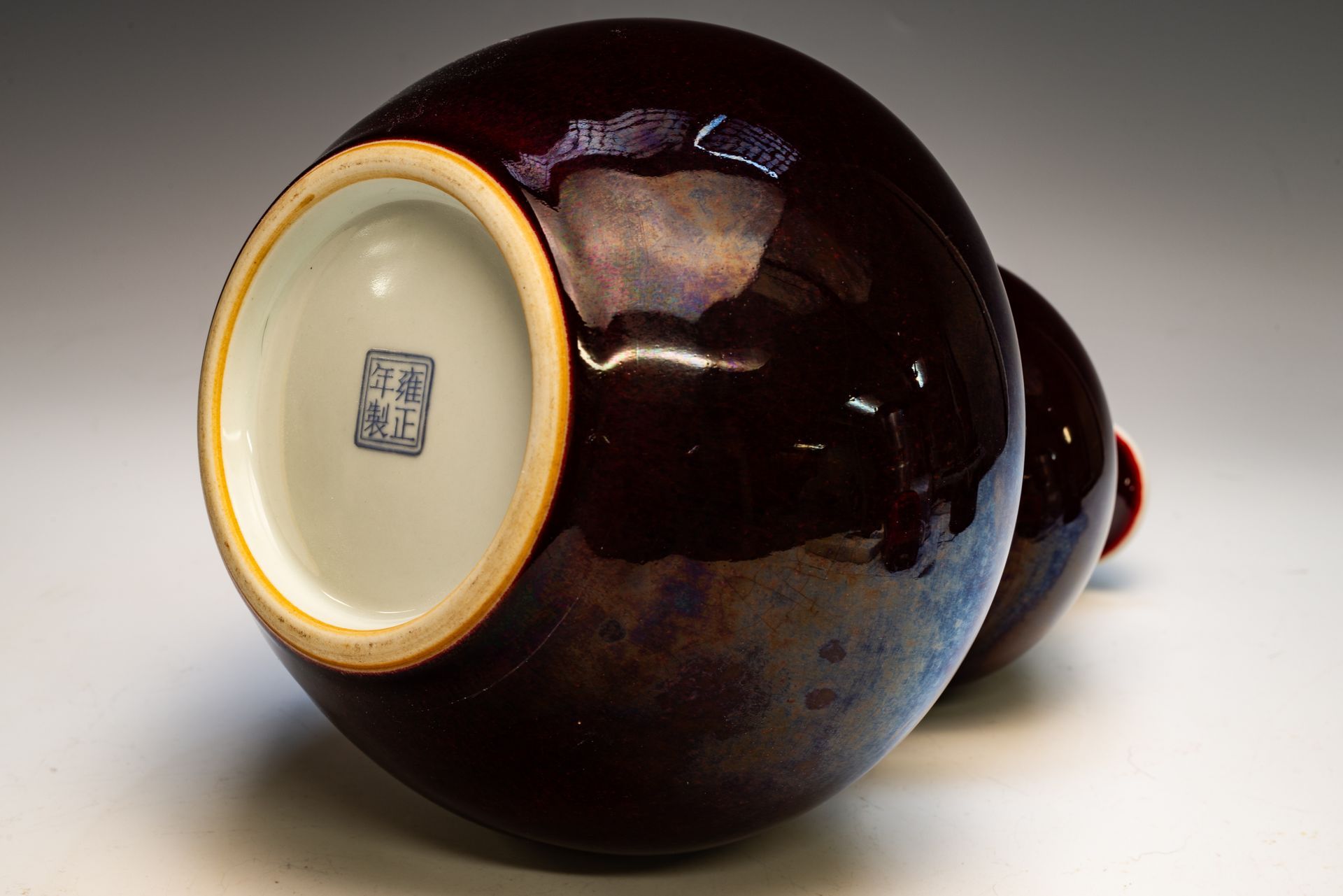 Artefacto marcado de la dinastía Qing: Jarrón de doble calabaza con esmalte de cereza negra del período Yongzheng.