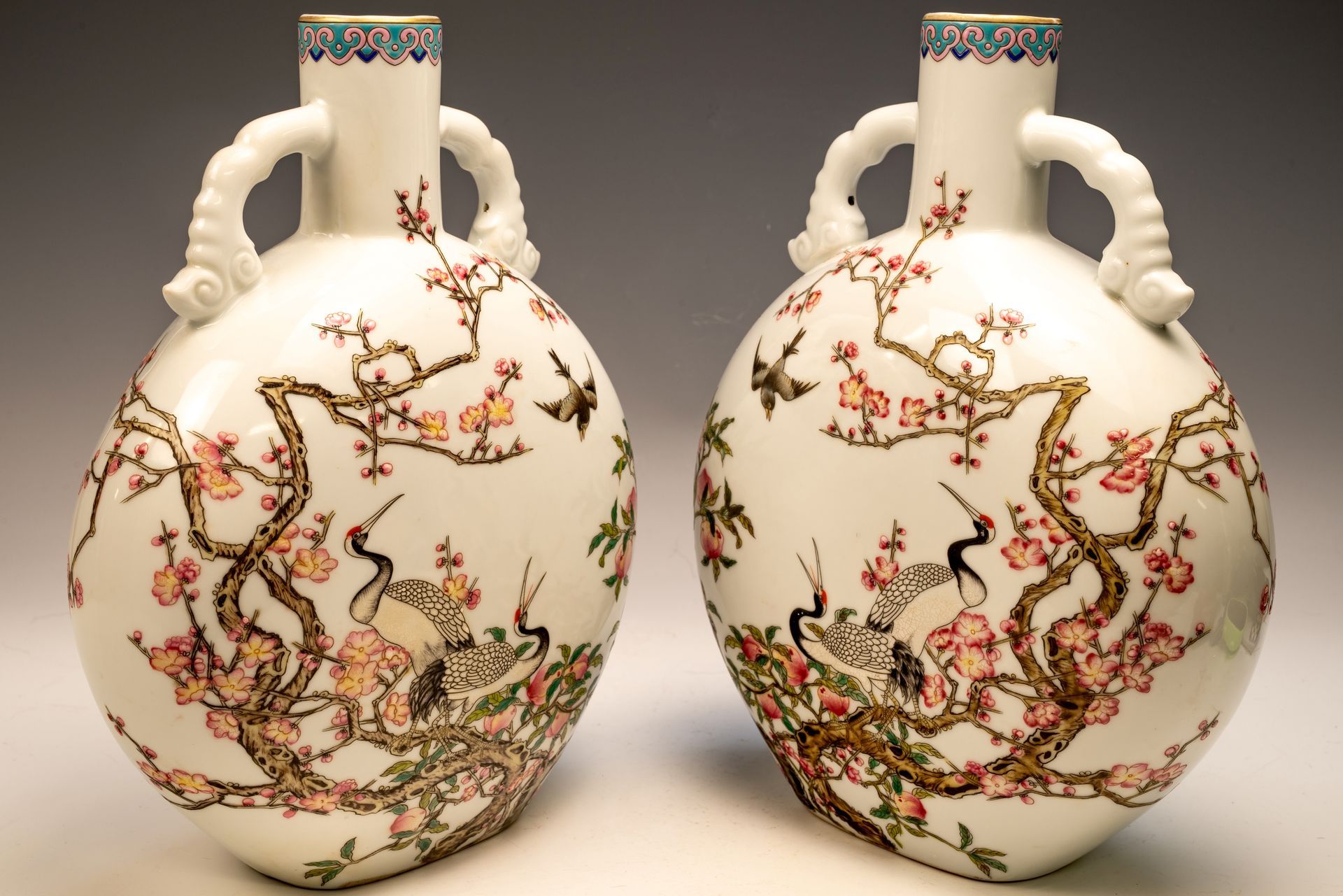Par de frascos lunares esmaltados de Falangcai de la dinastía Qing, marca y período Yongzheng