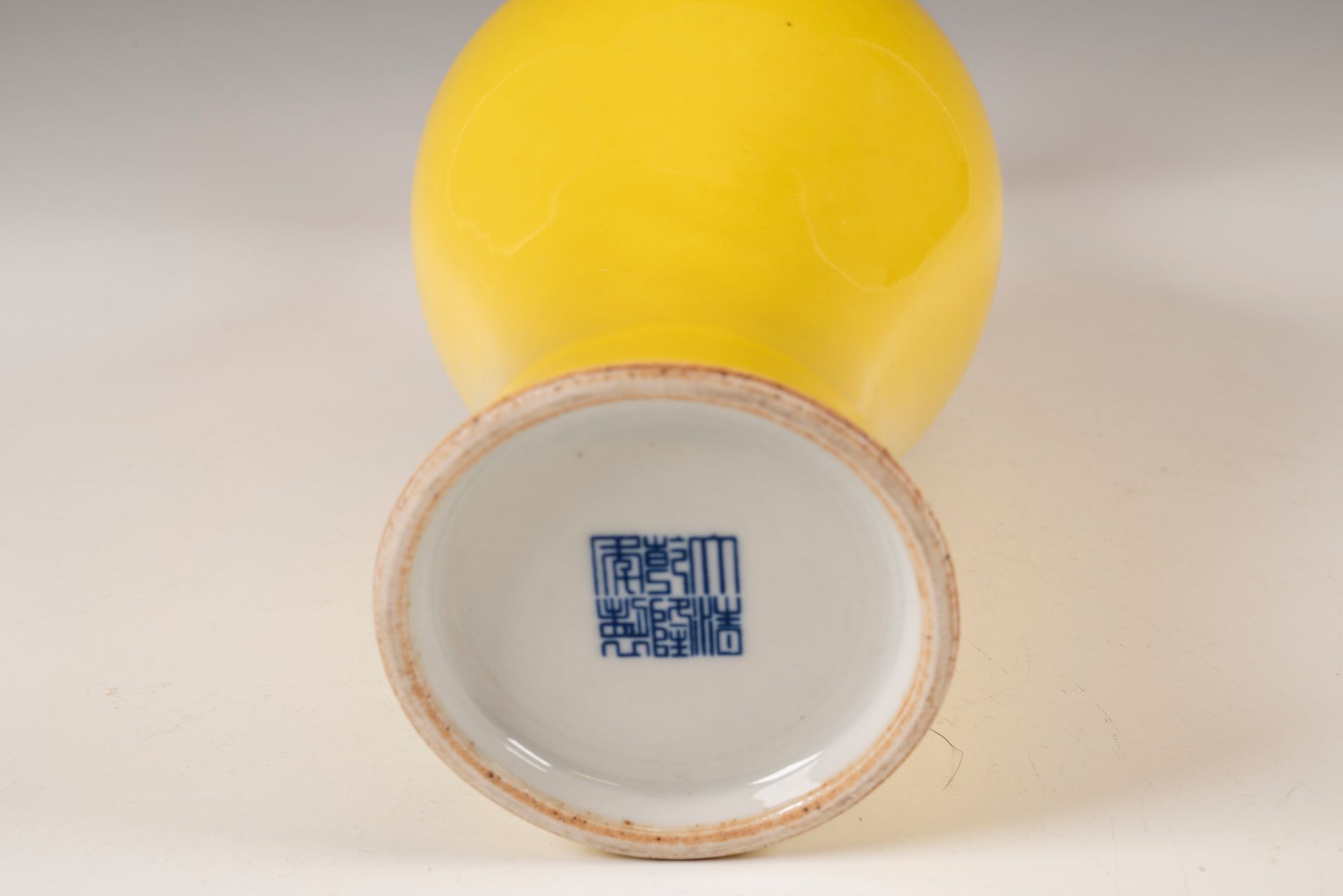Jarrón monocromático de color amarillo limón con marca imperial del período Kangxi de la dinastía Qing