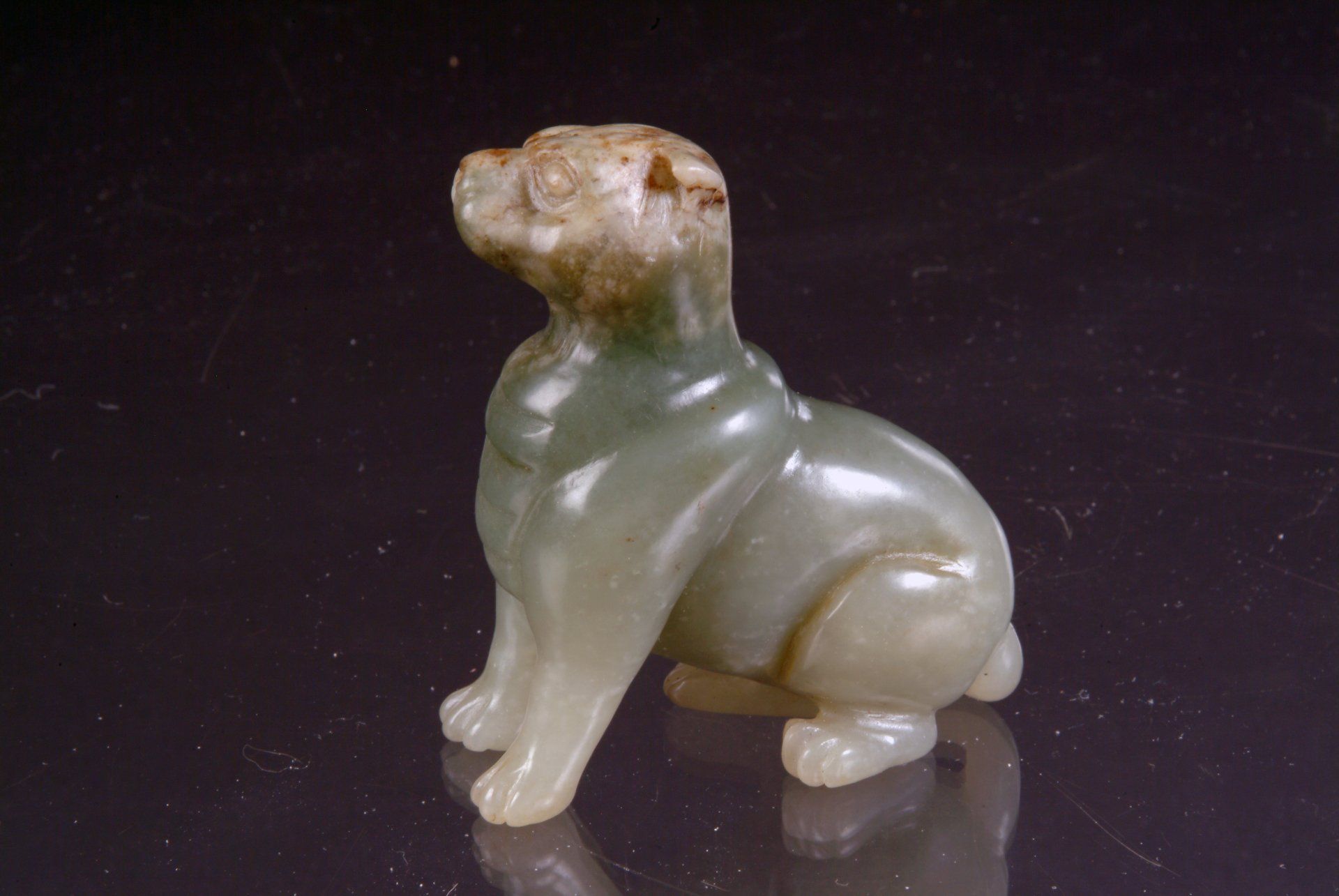Estatua de sabueso de jade verde grisáceo del período de las Seis Dinastías