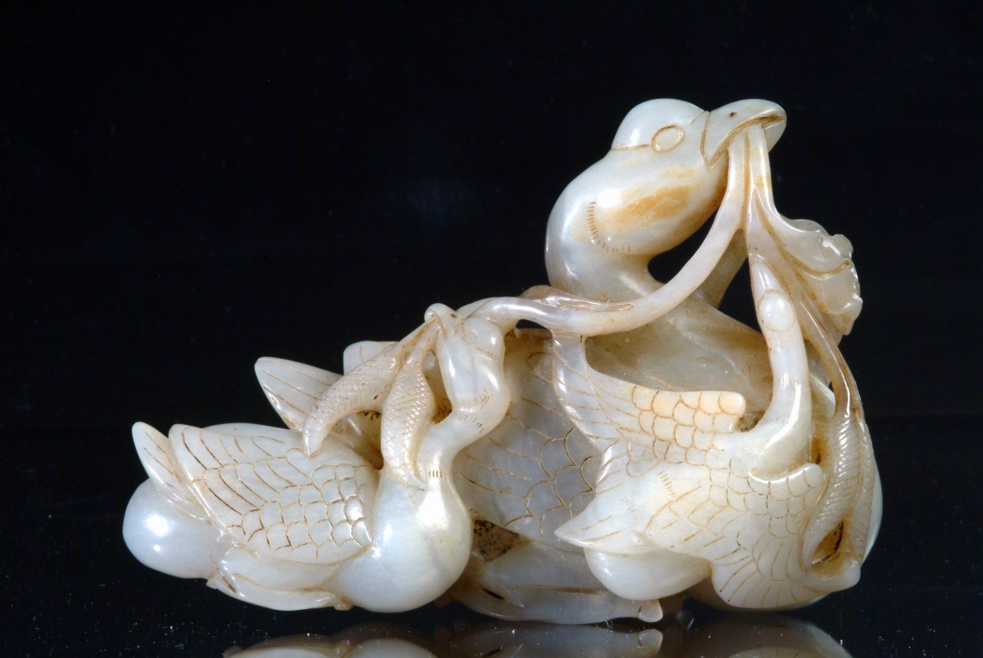 Estatua de un grupo de gansos en jade blanco grisáceo de la dinastía Song