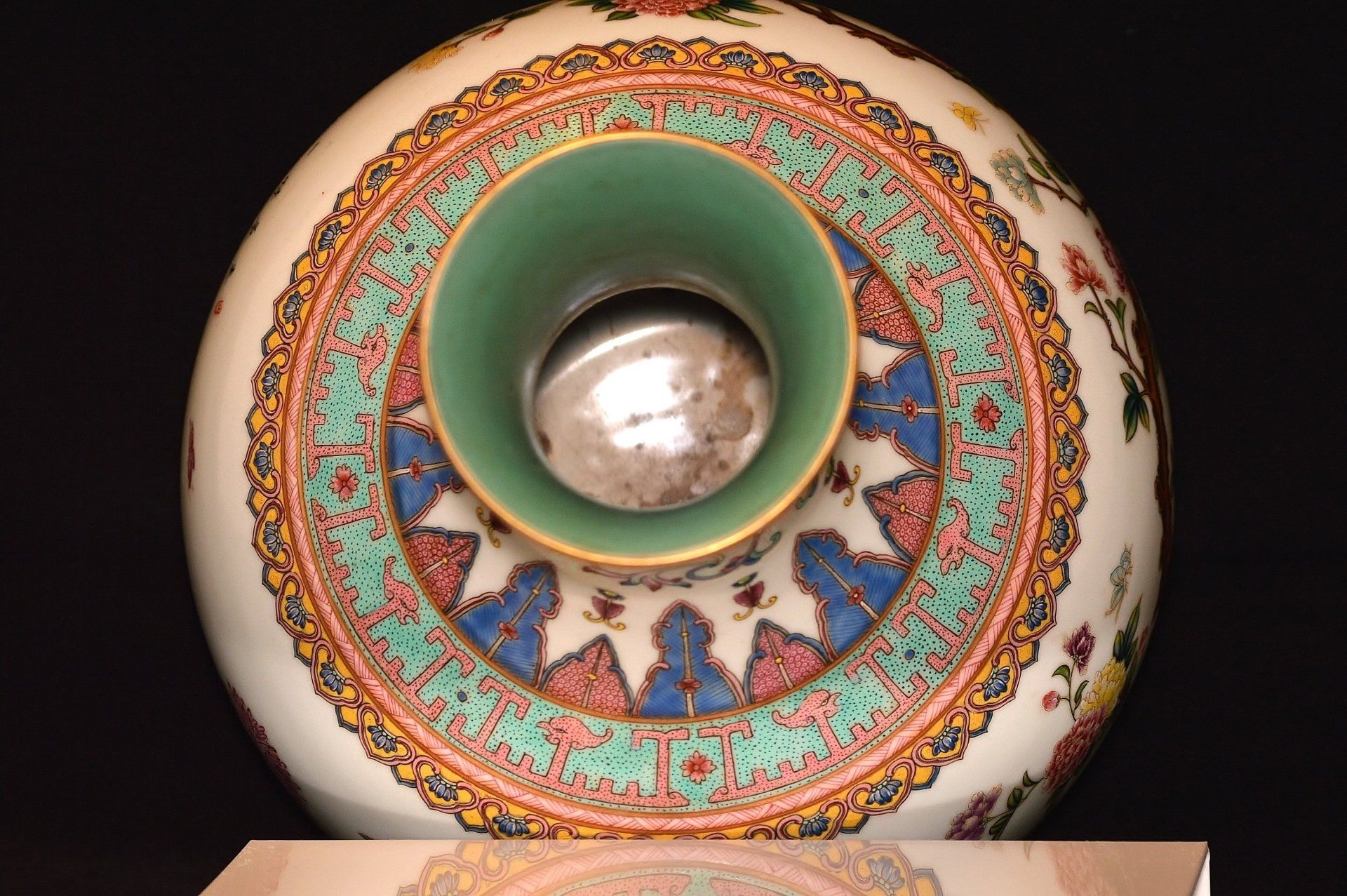 Vase globulaire impérial de la dynastie Qing, marqué Qianlong et de la période Famille Rose