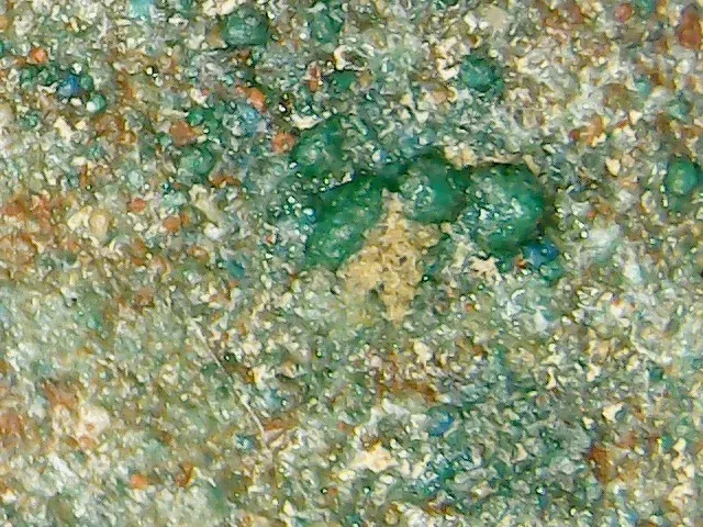 Dans son message, Peter Combs a tenté d'utiliser des exemples de corrosion de tuyaux en cuivre qui ne correspondent pas à la cuprite et à la malachite auxquelles je faisais référence. Ce type de corrosion, que l'on observe sur les tuyaux d'eau en cuivre, est très fragile et s'écaille facilement. Vous trouverez ci-dessous une série de photos en gros plan illustrant la corrosion par cuprite et malachite sur les bandes dorées au feu de cuivre de la faïence RU WARE. (Dorure au feu à l'or et au mercure, le mercure étant ensuite éliminé par le feu. Ce type de dorure n'est plus utilisé depuis le milieu du XIXe siècle car il est très dangereux.) Cette patine a mis environ 900 ans à se former sur les bandes et elle est authentique.