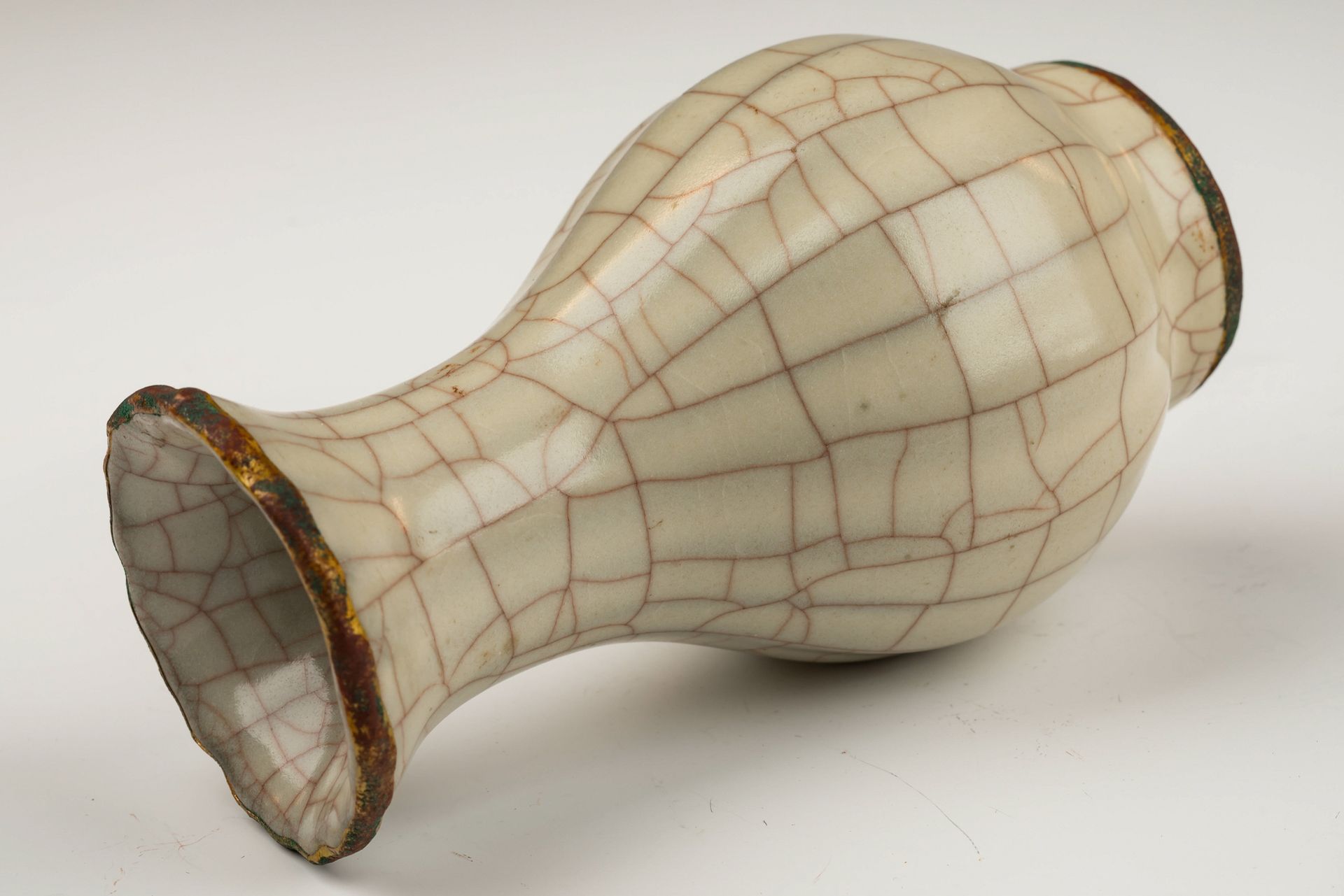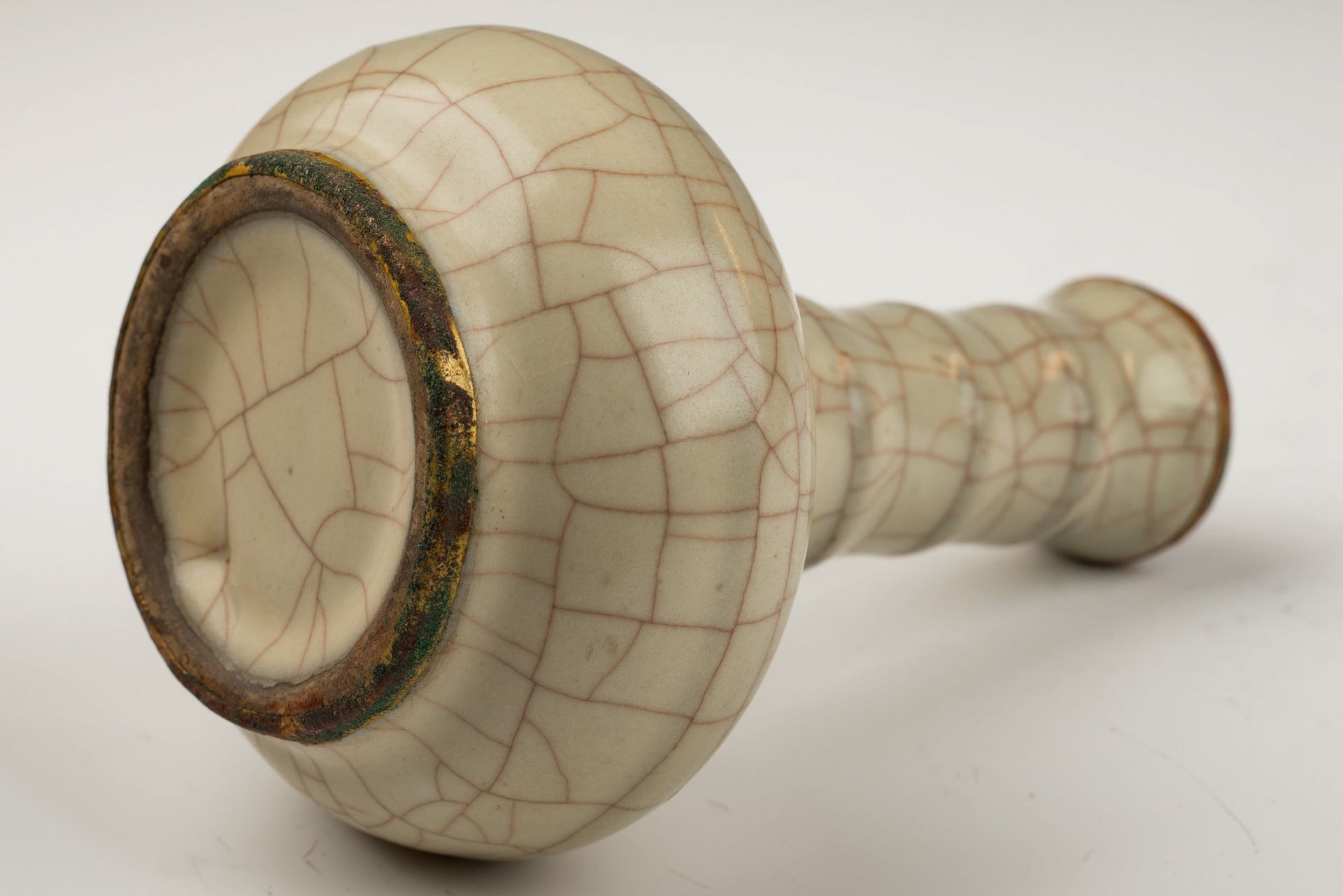 Vase Guan officiel de la dynastie Song du Sud : céramique impériale Guan à finition craquelée et bandes dorées