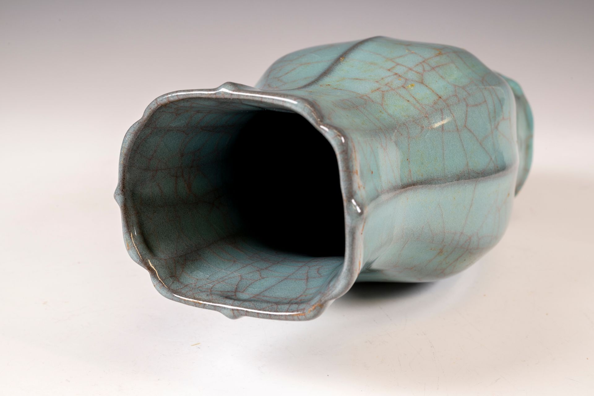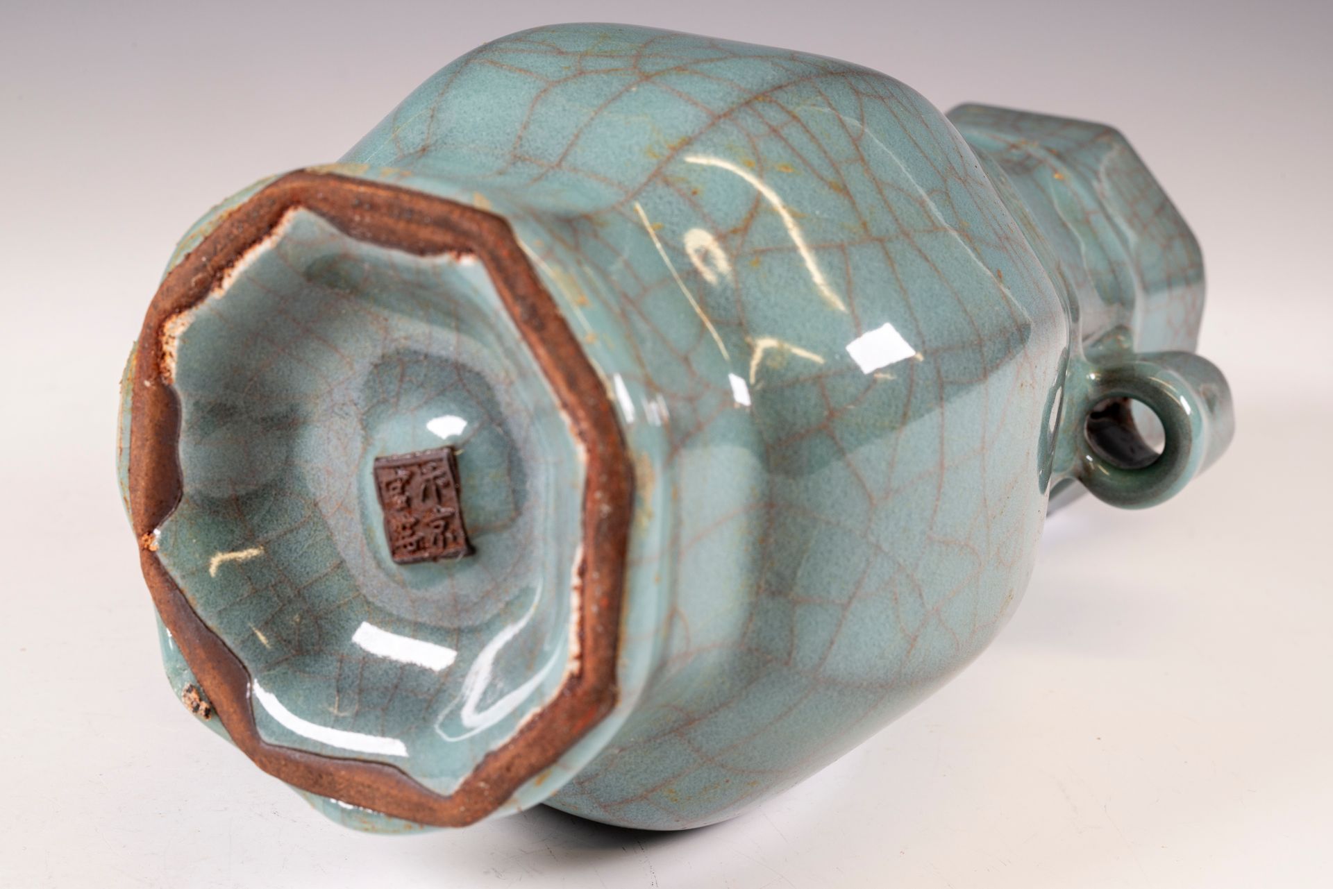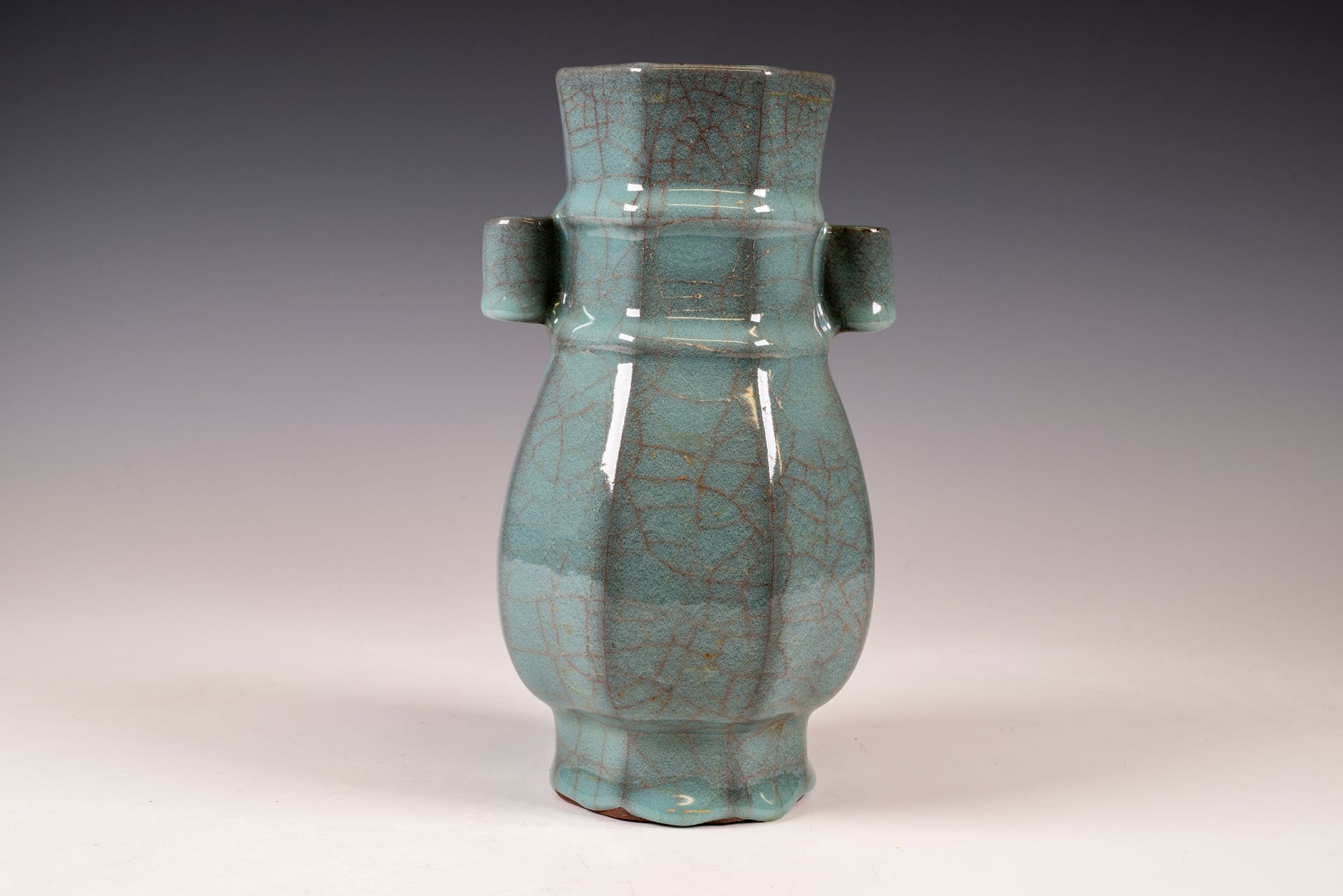 Vase octogonal officiel de forme Hu, en céramique impériale Guan de la dynastie Song du Sud, marqué et produit par le four intérieur de Xiuneisi.