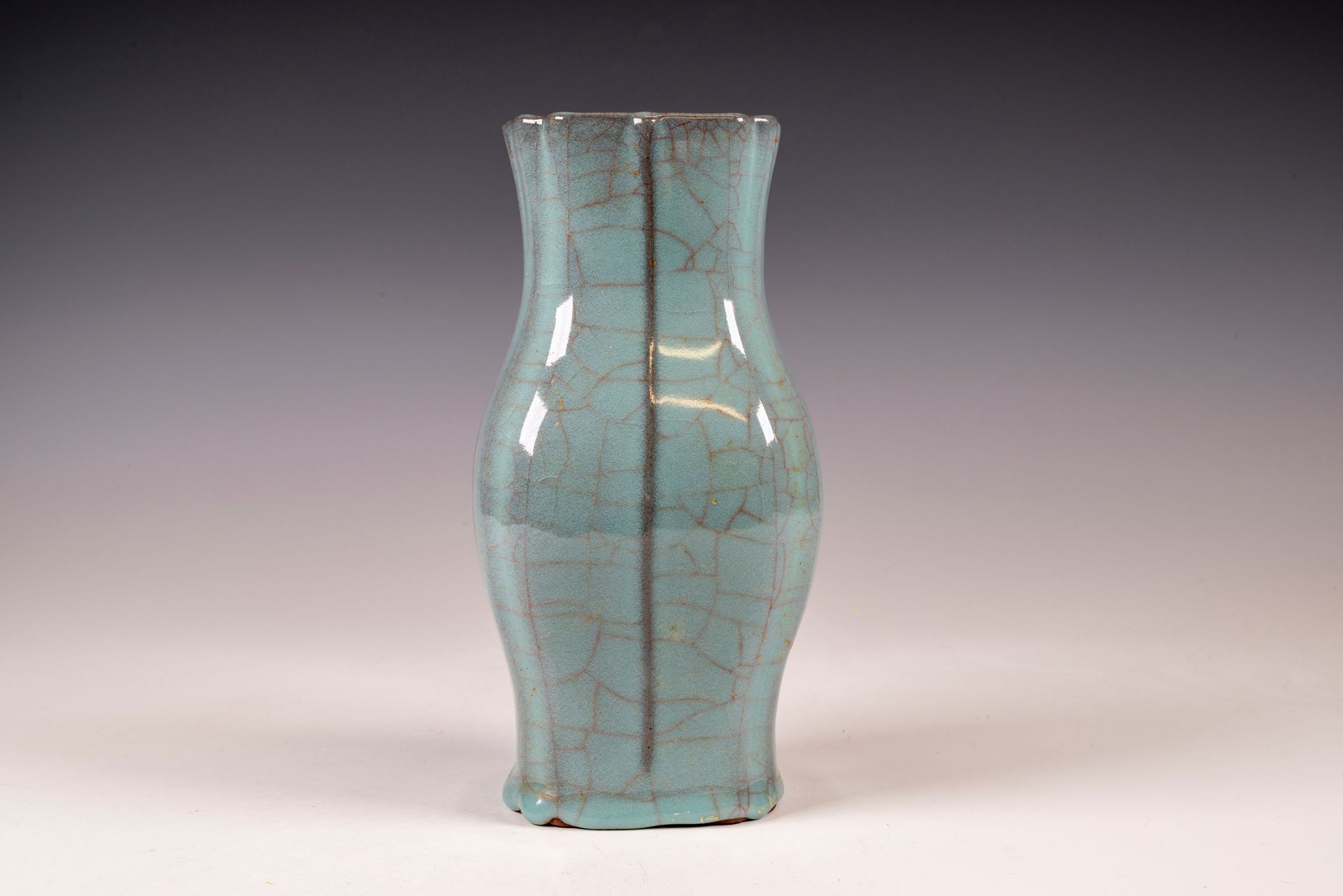 Vase côtelé de style Guan Xiuneisi, four intérieur impérial de la dynastie Song du Sud, marqué Guan Xiuneisi.